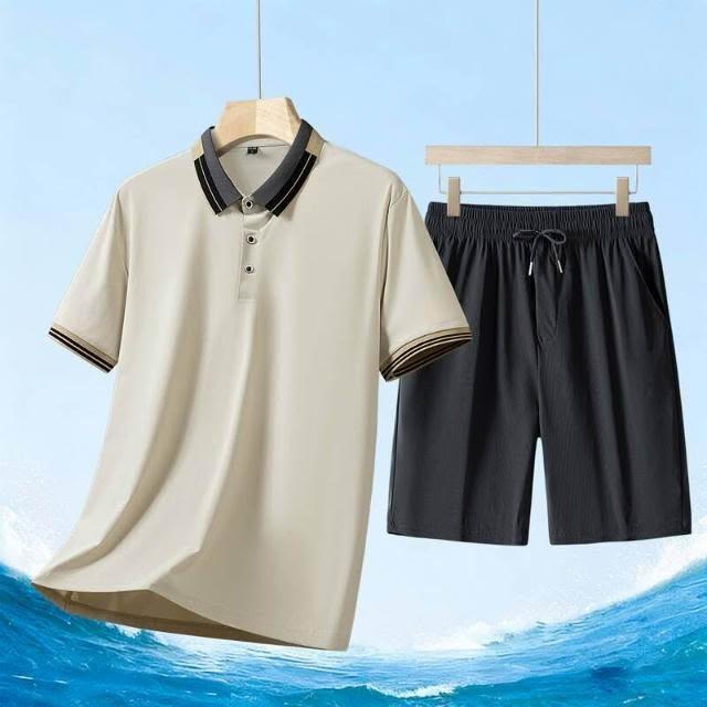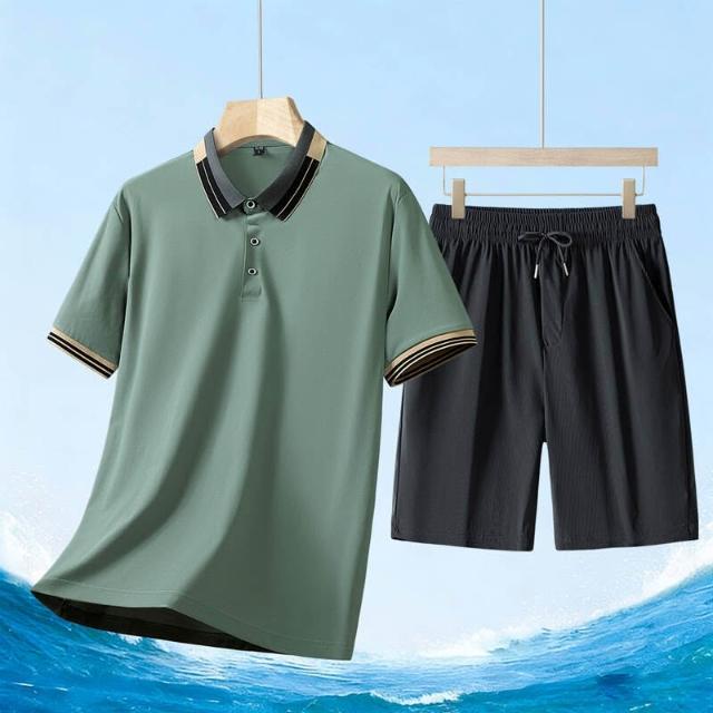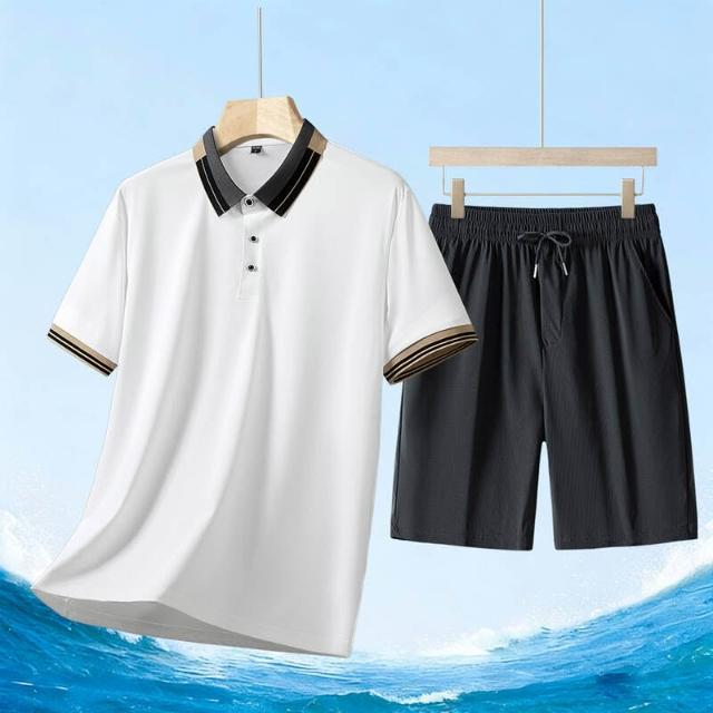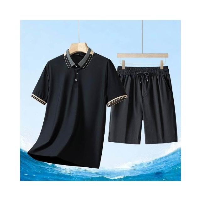 運動套裝男polo衫短袖上衣大尺碼涼感衣短褲吸濕排汗衣薄冰絲短袖T恤褲子休閒套裝男生羽球衣服高爾夫球衣登山透氣速乾褲子 夏天中年爸爸男裝兩件套居家舒適套裝運動寬短褲兩件式套裝跑步健身衣寬鬆t恤防曬褲
