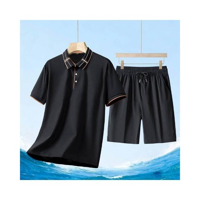 運動套裝男polo衫短袖上衣大尺碼涼感衣短褲吸濕排汗衣薄冰絲短袖T恤褲子休閒套裝男生羽球衣服高爾夫球衣登山透氣速乾褲子 夏天居家舒適套裝運動寬短褲兩件式套裝中年爸爸男裝兩件套跑步健身衣寬鬆t恤防曬褲