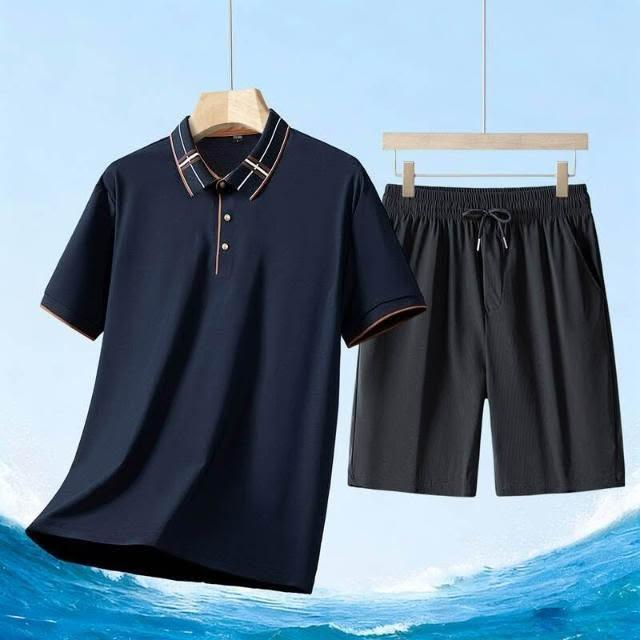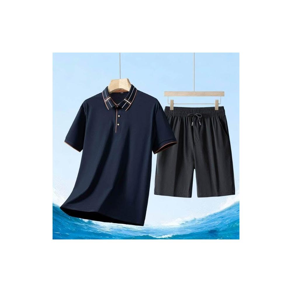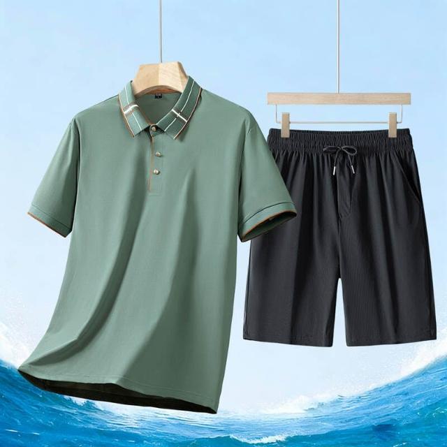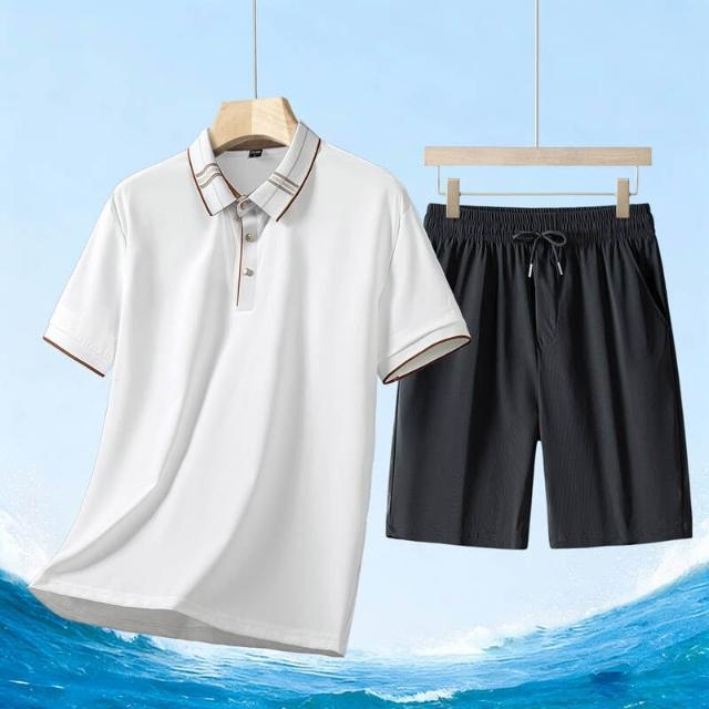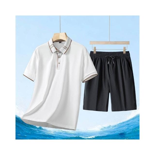 運動套裝男polo衫短袖上衣大尺碼涼感衣短褲吸濕排汗衣薄冰絲短袖T恤褲子休閒套裝男生羽球衣服高爾夫球衣登山透氣速乾褲子 夏天居家舒適套裝運動寬短褲兩件式套裝中年爸爸男裝兩件套跑步健身衣寬鬆t恤防曬褲