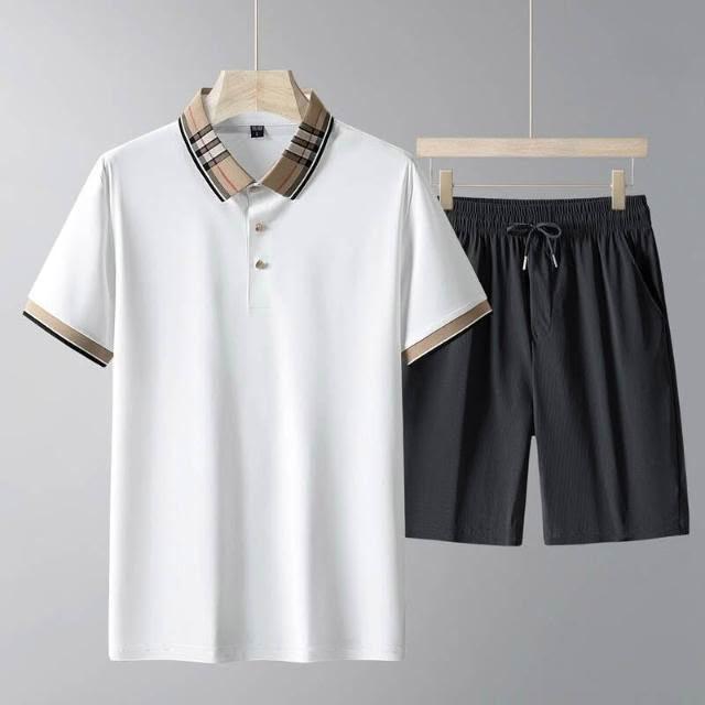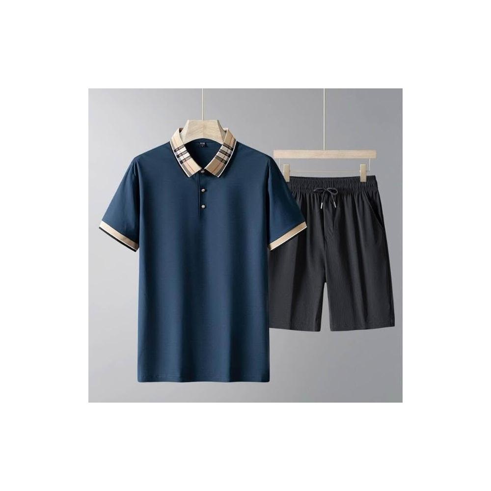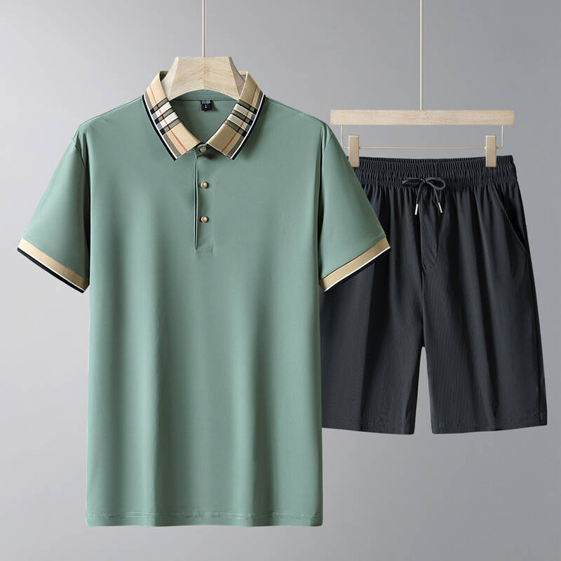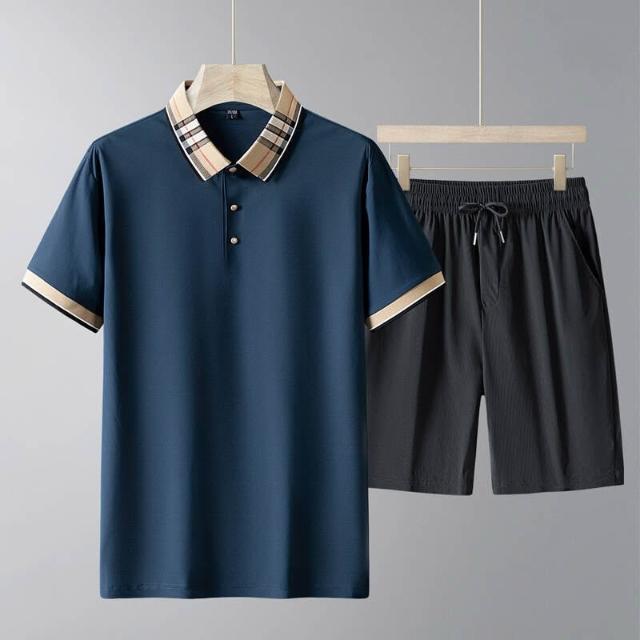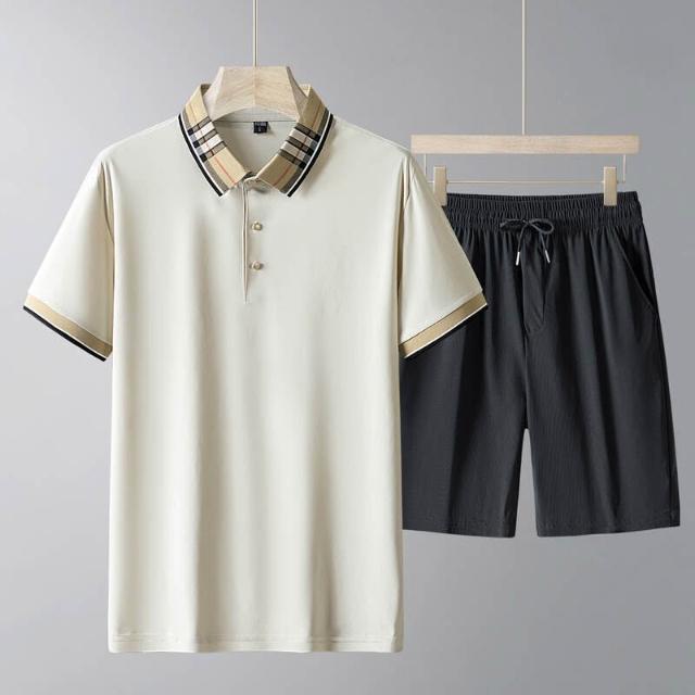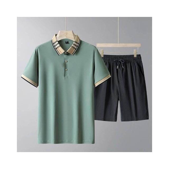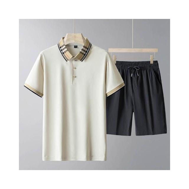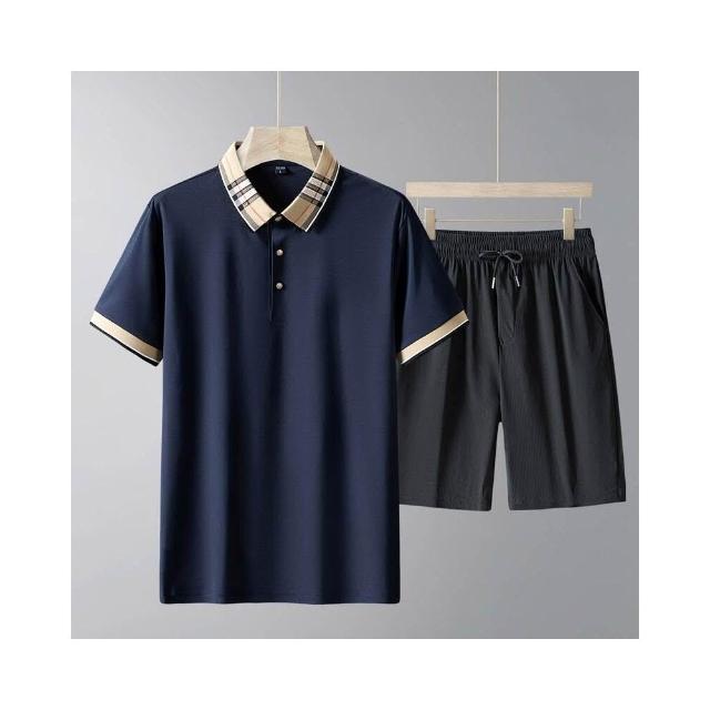 運動套裝男polo衫短袖上衣大尺碼涼感衣短褲吸濕排汗衣薄冰絲短袖T恤褲子休閒套裝高爾夫球衣羽球衣服男生登山透氣速乾褲子 夏天居家舒適套裝兩件式運動寬短褲套裝寬鬆t恤防曬褲跑步健身衣中年男裝爸爸兩件套