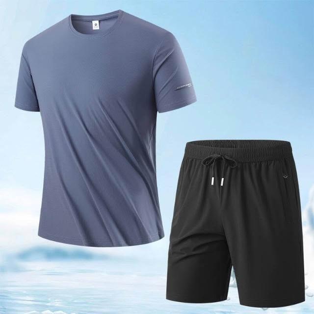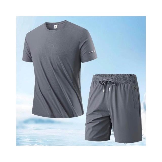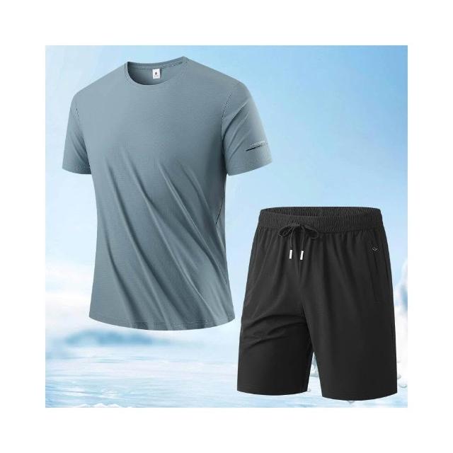 運動套裝男短袖上衣大尺碼涼感衣短褲吸濕排汗衣薄男生冰絲短袖T恤褲子登山透氣速乾褲子休閒套裝高爾夫球衣羽球衣服 夏天寬鬆t恤男裝跑步健身衣五分寬褲運動短褲防曬褲中年爸爸兩件套居家兩件式套裝舒適套裝