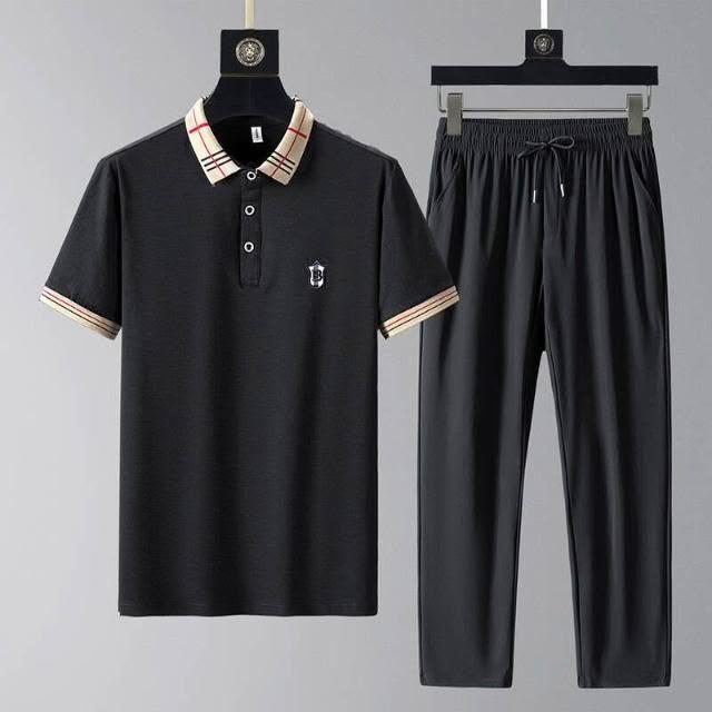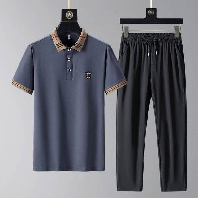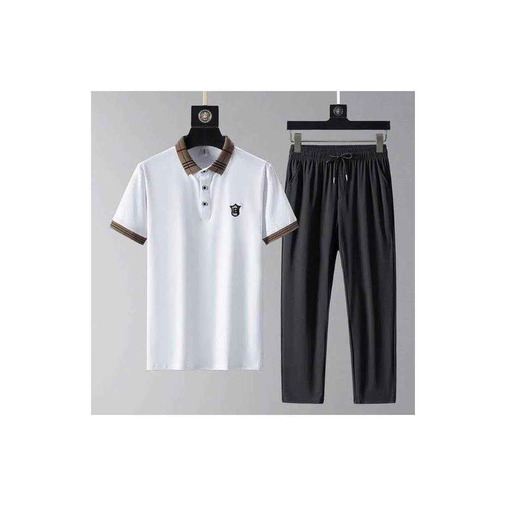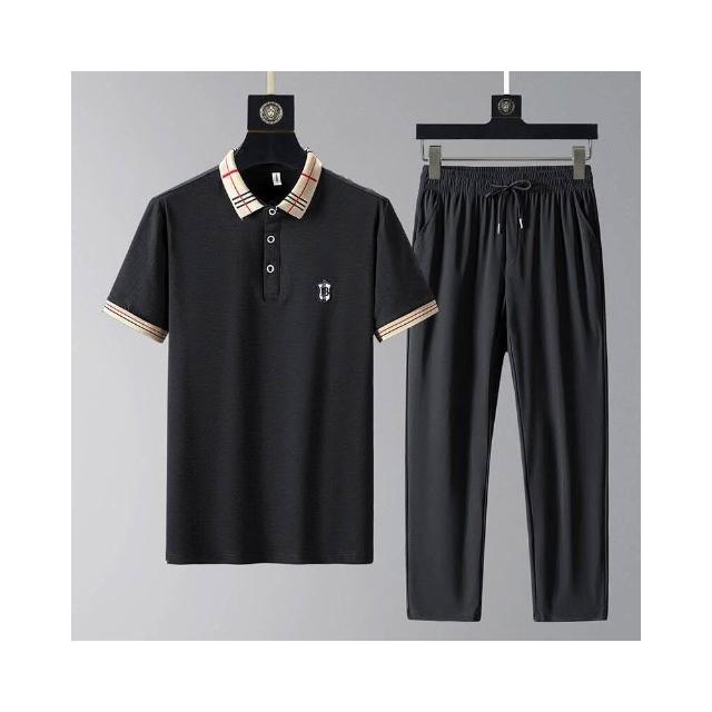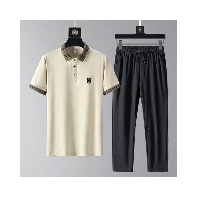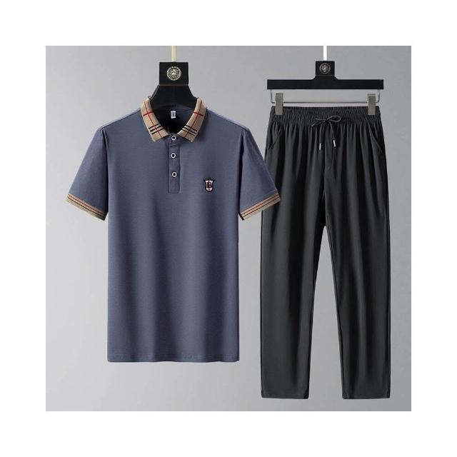 運動套裝男polo衫短袖上衣大尺碼涼感衣長褲薄吸濕排汗衣冰絲短袖T恤褲子休閒套裝羽球衣服高爾夫球衣男生登山透氣速乾長褲 夏天中年爸爸男裝兩件套居家舒適套裝兩件式套裝跑步健身衣寬鬆t恤防曬褲運動男寬褲