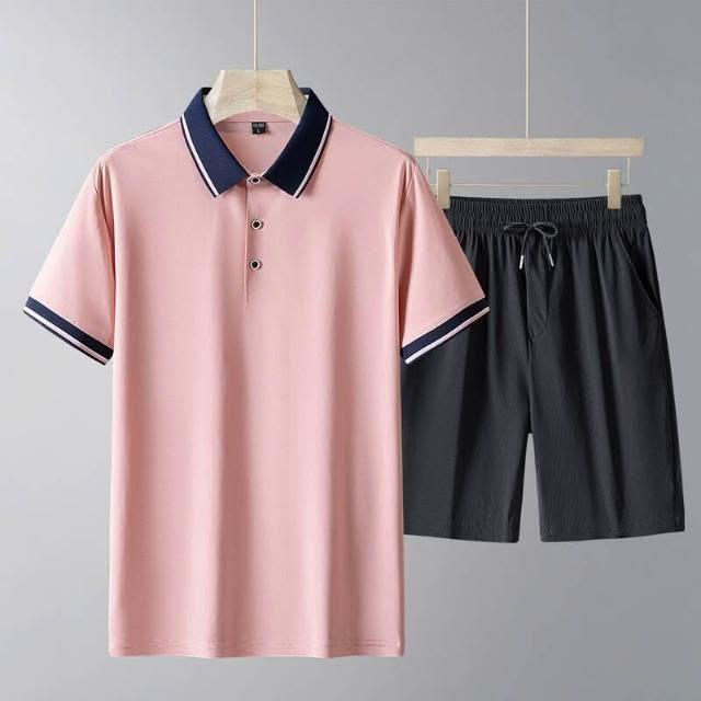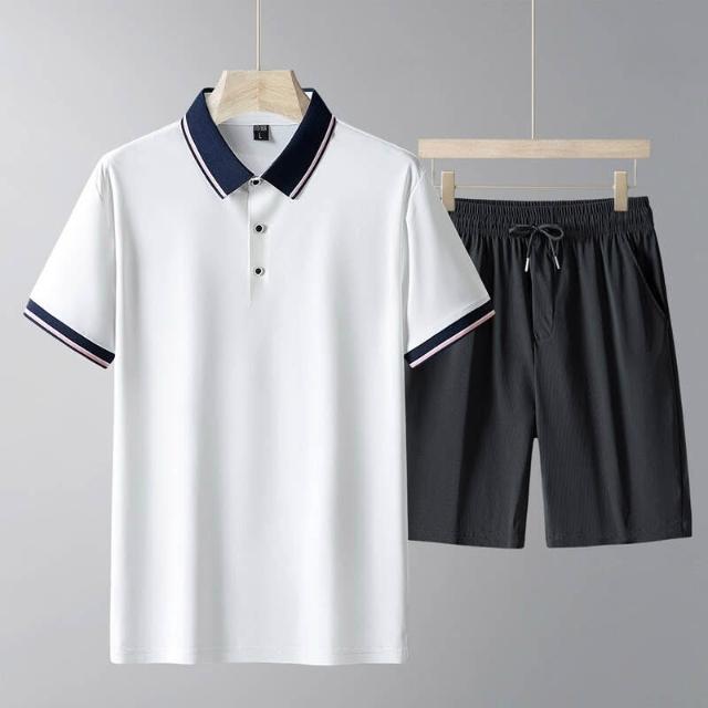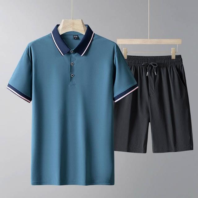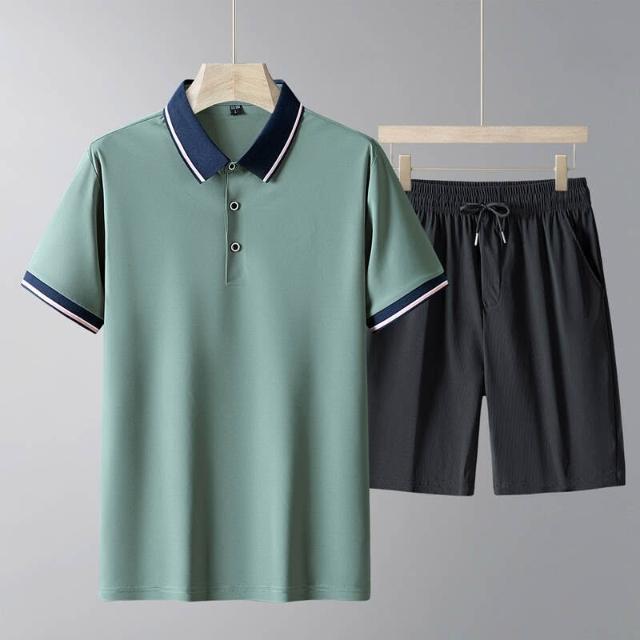 運動套裝男polo衫短袖上衣大尺碼涼感衣短褲吸濕排汗衣薄冰絲短袖T恤褲子休閒套裝男生高爾夫球衣羽球衣服登山透氣速乾褲子 夏天居家舒適套裝中年爸爸男裝兩件套運動寬短褲兩件式套裝寬鬆t恤防曬褲跑步健身衣