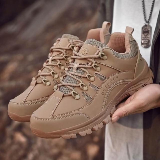 大尺碼 登山鞋男厚底大尺碼新款男士運動鞋休閑舒適透氣防水防滑百搭旅遊戶外耐磨工作男鞋久走不磨腳增高緩震徒步健走鞋圓頭寬楦平底鞋