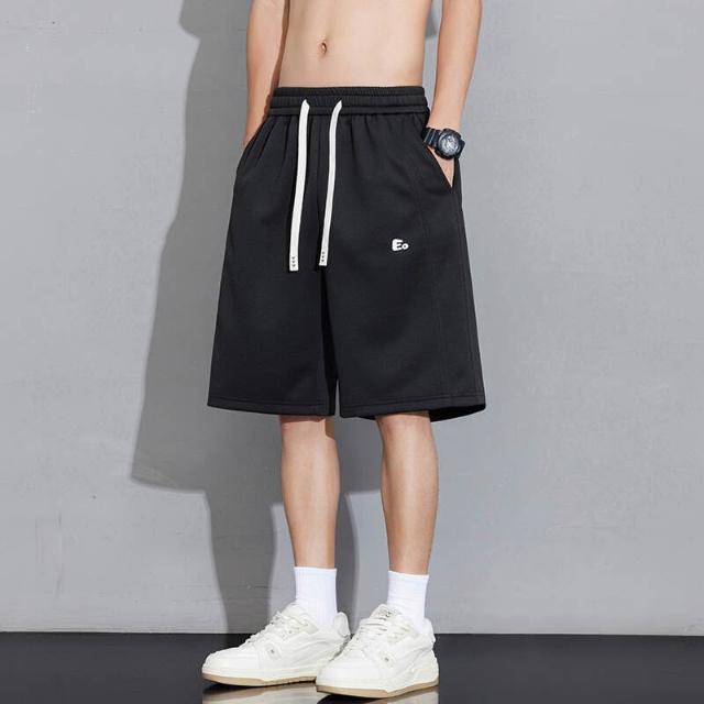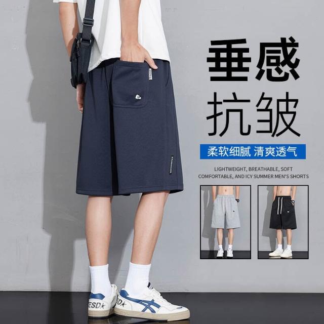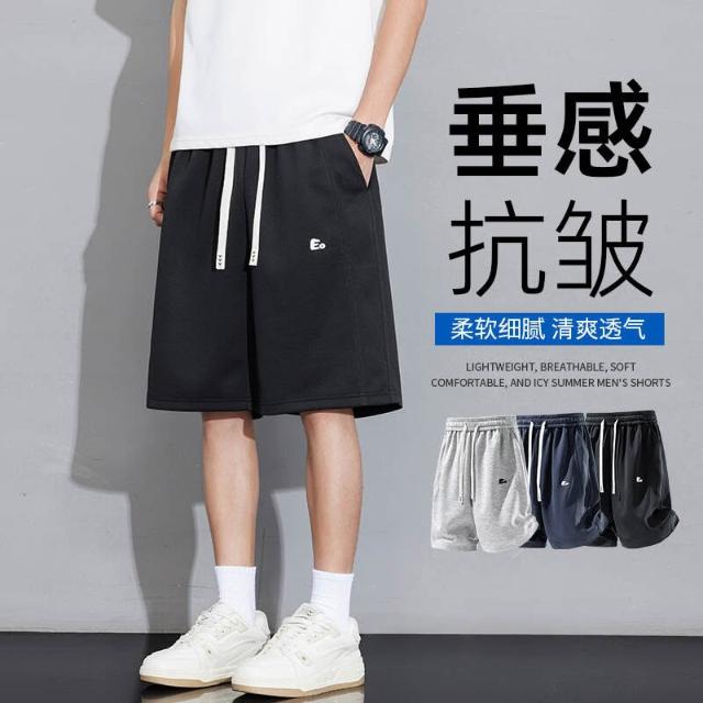 運動短褲男夏季薄款冰絲涼感速乾刺繡短褲輕薄透氣寬鬆舒適彈力五分褲大尺碼休閒騎車登山跑步籃球褲吸濕排汗沙灘褲男生涼感寬褲