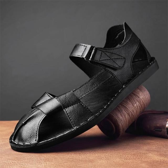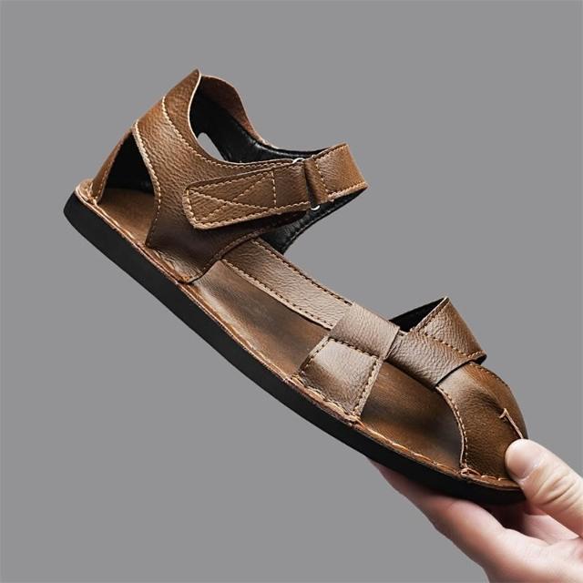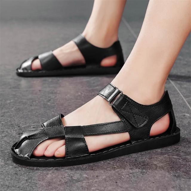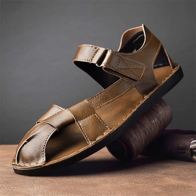 涼鞋男厚底拖鞋大尺碼休閒鞋防滑平底懶人鞋夏季輕便透氣包頭涼拖鞋戶外涉水運動涼鞋止滑健走鞋時尚內增高男鞋男士舒適一字涼鞋 夏天男款護趾水陸涼鞋護指機能登山涼鞋男生室內室外寬楦氣墊真皮涼鞋子軟底沙灘鞋