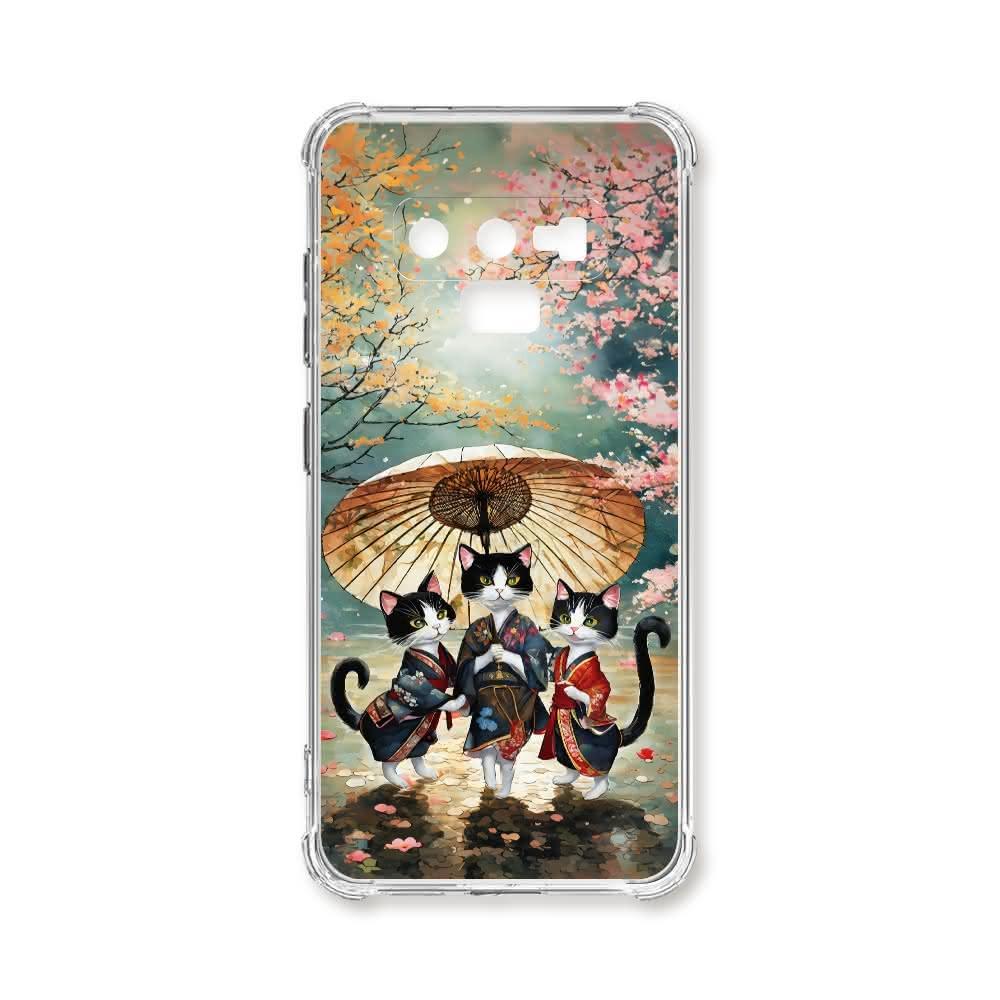 TRONTRON 三星 NOTE 9 撐傘在櫻花下跳舞的3隻貓咪 四角防摔 軟殼 手機殼