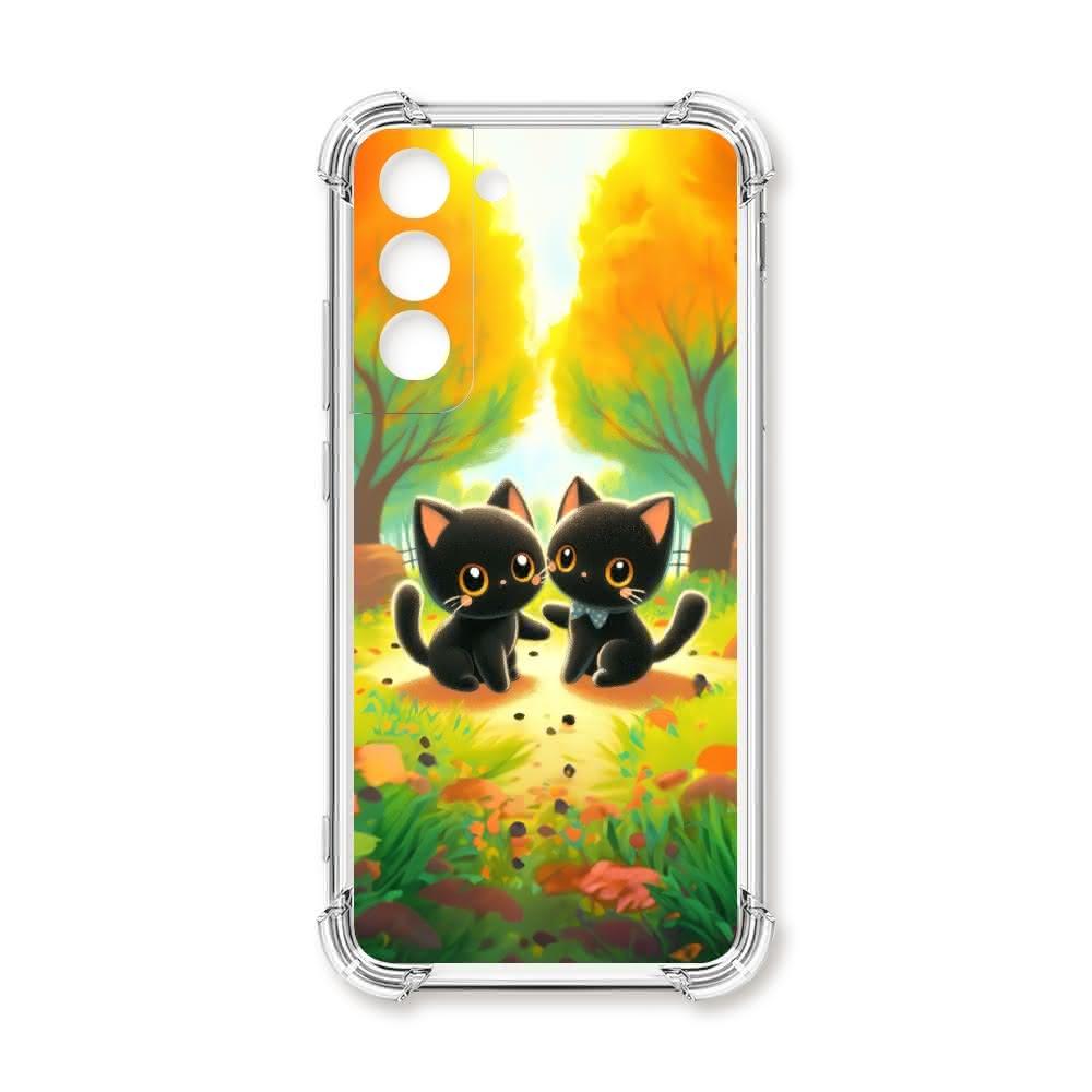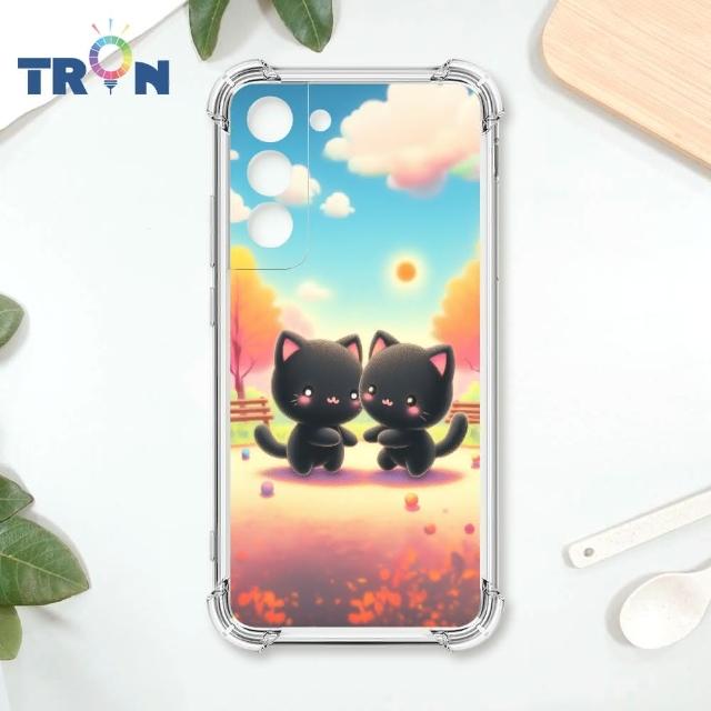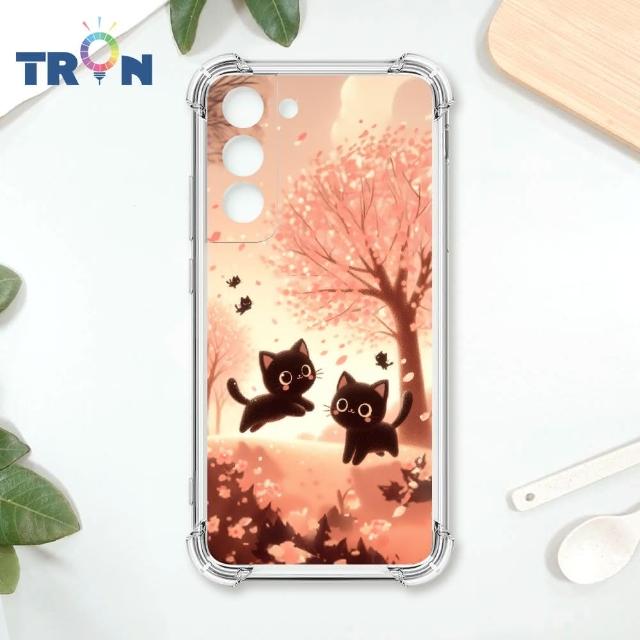 TRONTRON 三星 S22 櫻花公園黑色貓咪 四角防摔 軟殼 手機殼