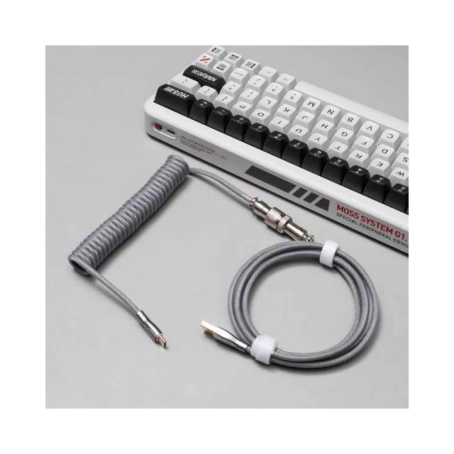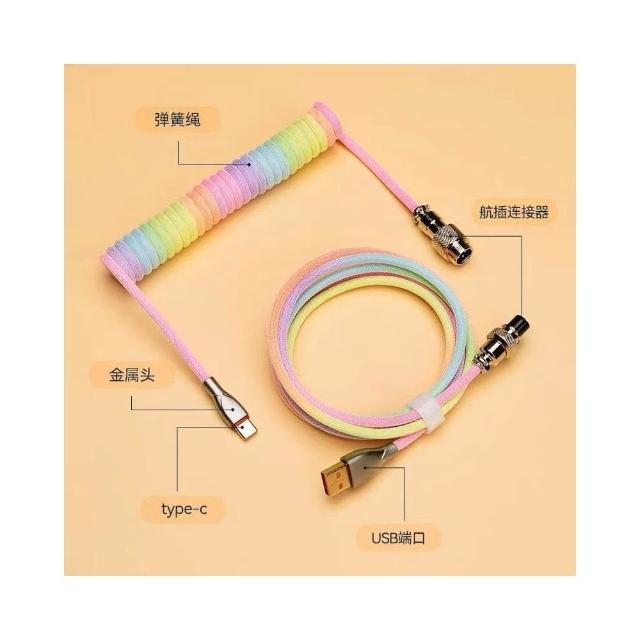 台灣出貨 航插線 數據線 TYPE-C 航太捲線 雙層編織網 螺旋線 數據線 電源線 機械鍵盤 鍵盤DIY