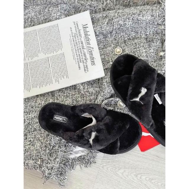 PUMAPUMA Fluff X Strap 交叉毛毛拖鞋 黑色 女款 女鞋 38535201