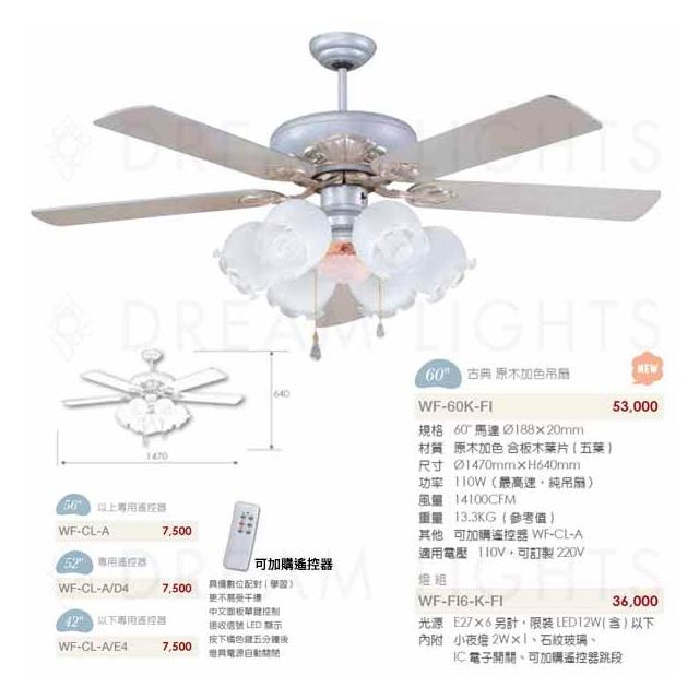 C吊扇 吊扇燈 60吋 原木加色 WF-60K-FI 【實體門市保固一年吊扇 循環扇 可遙控 風扇燈