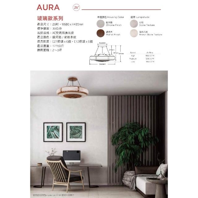 26吋AC交流馬達 E27 AURA系列 隱形吊扇 LED吊扇燈 吊扇燈 吊扇 遙控吊扇
