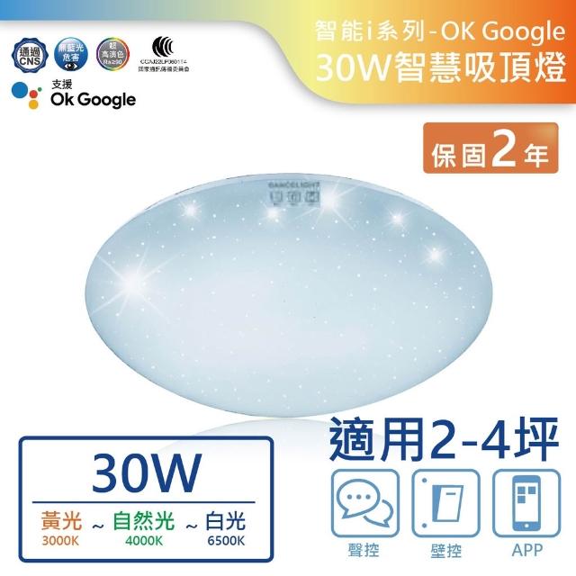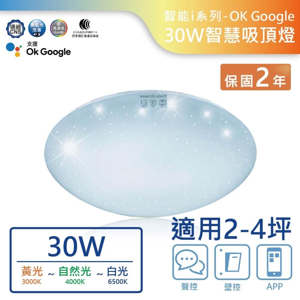 LED 30W/OK Google智慧聲控遙控吸頂燈(黃光~自然光~白光)【實體門市保固二年】LED-C