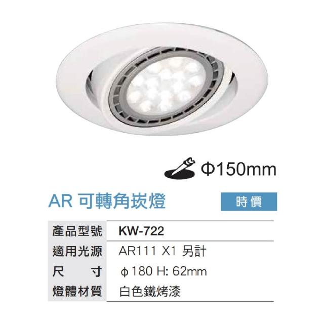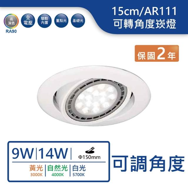 AR111/15cm/9W/14W可轉角度崁燈(白光/自然光/黃光)【實體門市保固兩年】KW-722