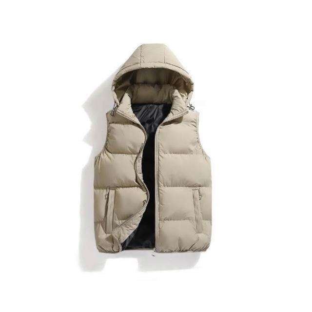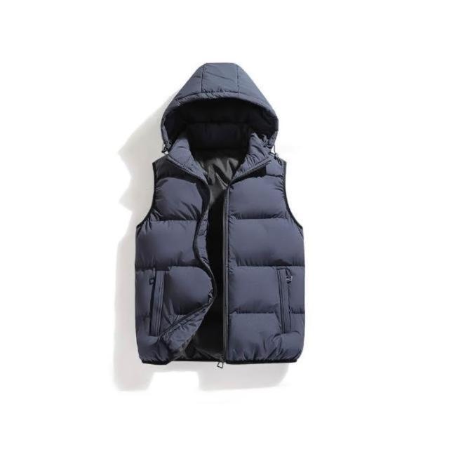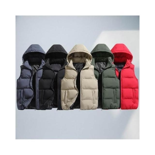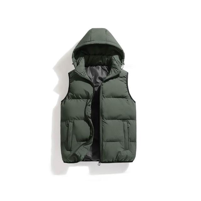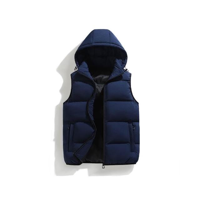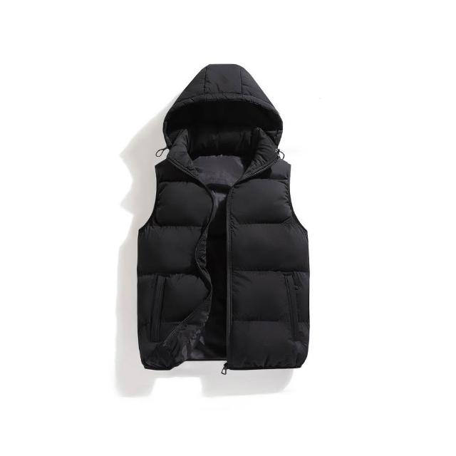 背心男防風鋪棉無袖外套加絨加厚防寒保暖休閒無袖坎肩外穿上衣連帽背心外套秋冬戶外徒步登山商務工裝馬甲背心可拆卸帽子飛行夾克