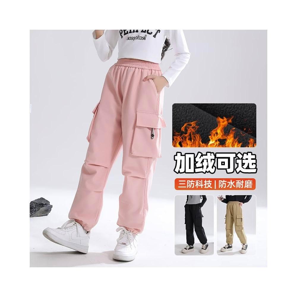 運動褲兒童衝鋒褲男女童防水防風登山大尺碼耐磨保暖防寒工作褲冬季加絨加厚刷毛雪褲男童三防徒步滑雪長褲男生直筒寬鬆機能工裝褲