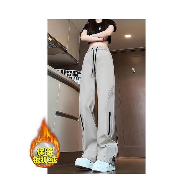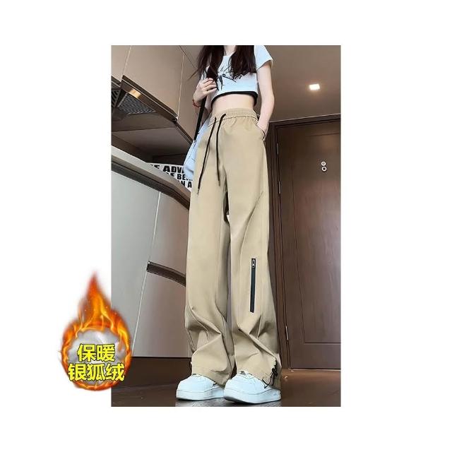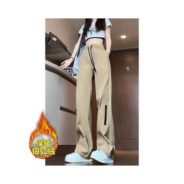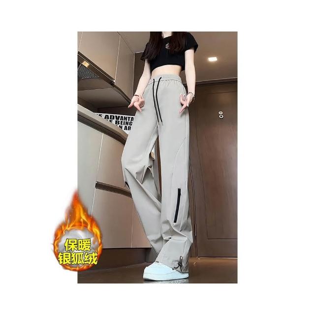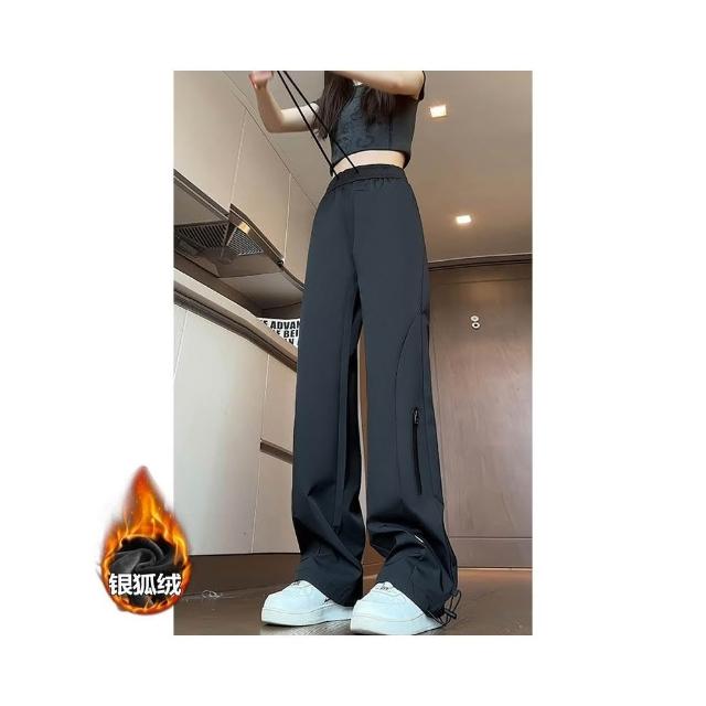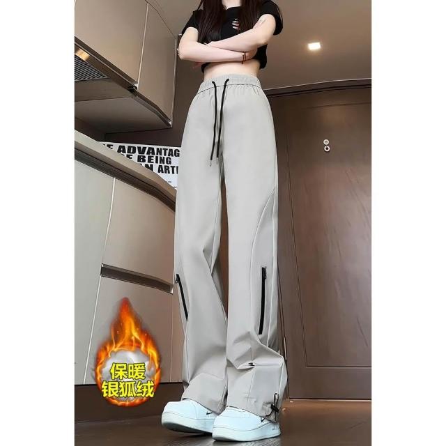 防風防潑水衝鋒褲滑雪褲男女生運動褲防風禦寒保暖褲傘兵褲工作褲寬鬆休閒褲秋冬天加絨加厚長褲運動長褲美式高街寬褲多口袋工裝褲