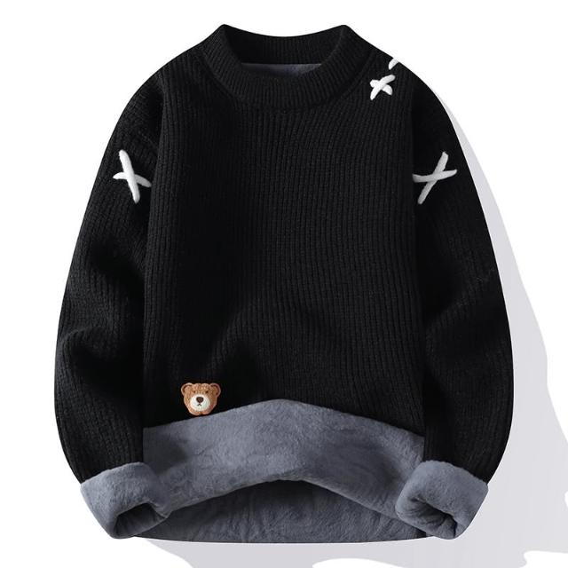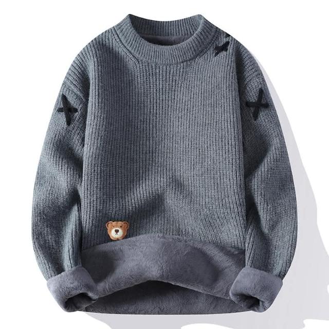 冬季衣服 重磅圓領針織毛衣 圓領毛衣男 長袖針織毛衣男 保暖內搭毛衣 韓版慵懶風針織衫 冬季衣服 保暖毛衣 素色毛衣男