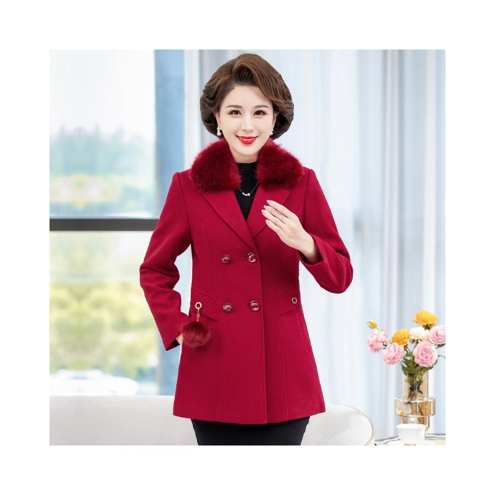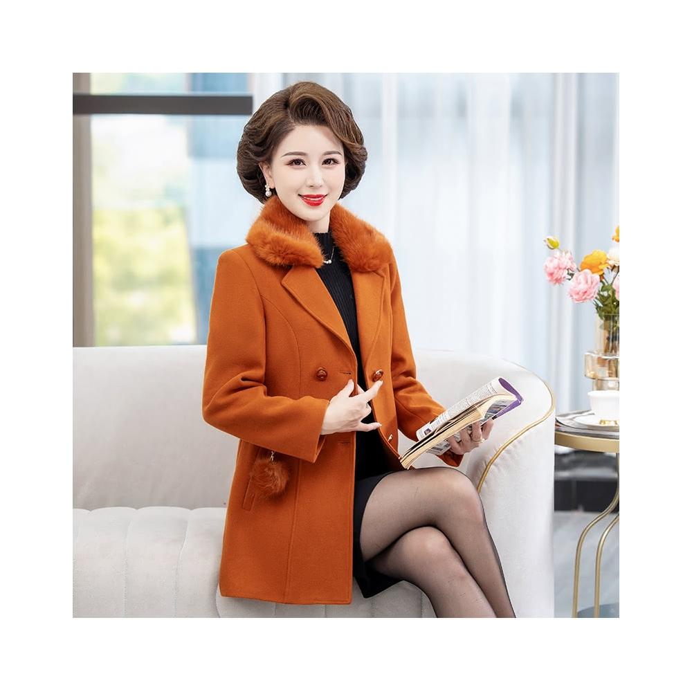 女款毛呢大衣 秋冬外套 保暖大衣 中長款毛呢大衣 外套女 毛呢外套女 呢子外套 中老年外套女 超保暖 中長款大衣