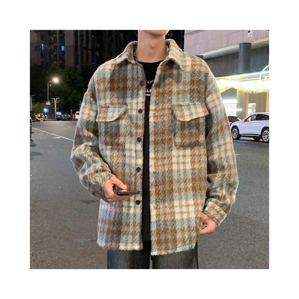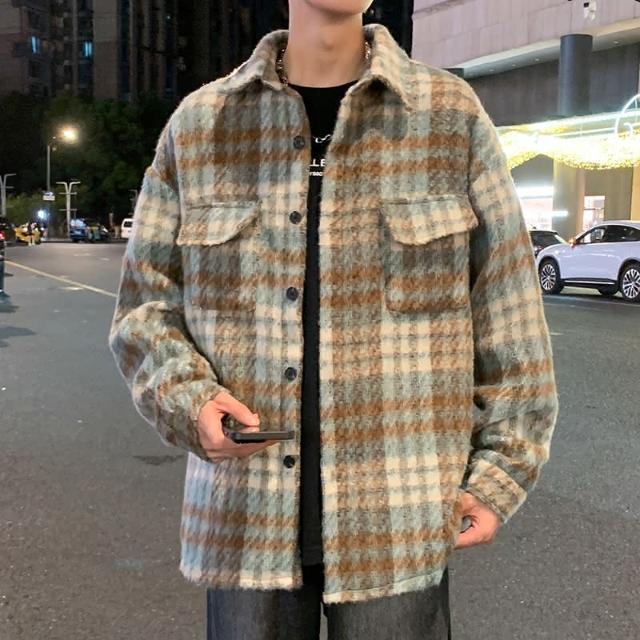 格子毛呢外套男 休閒毛呢外套 毛呢外套 男大衣外套 新款男裝大衣 短款毛呢大衣 呢子外套 青年外套 保暖外套 大碼外套男