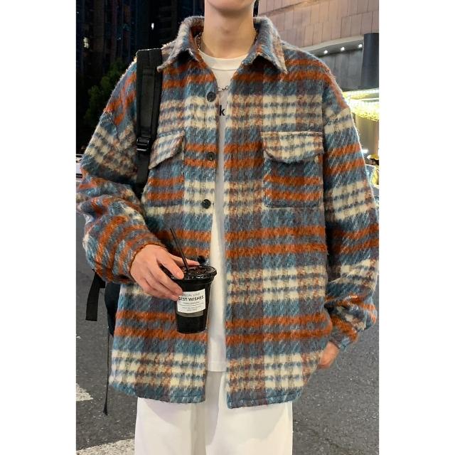 格子毛呢外套男 休閒毛呢外套 毛呢外套 男大衣外套 新款男裝大衣 短款毛呢大衣 呢子外套 青年外套 保暖外套 大碼外套男