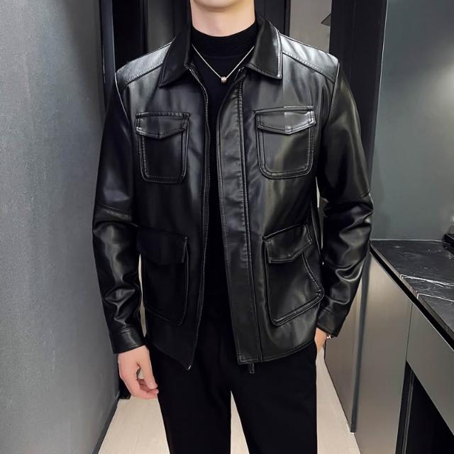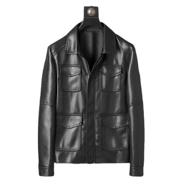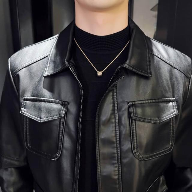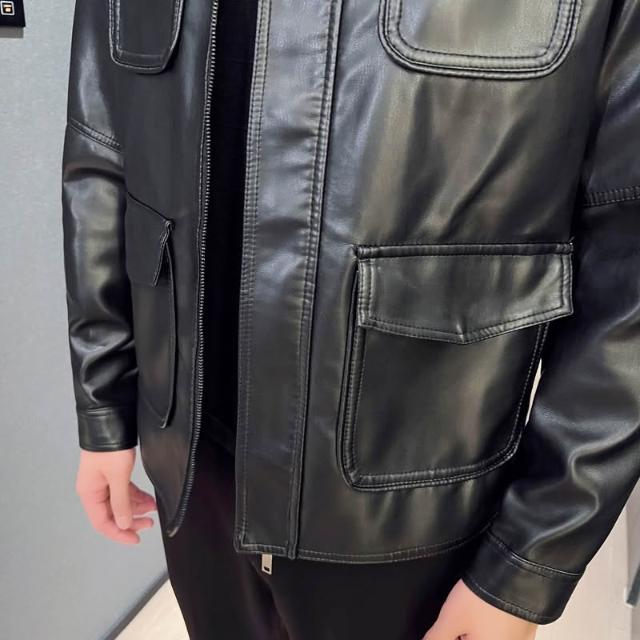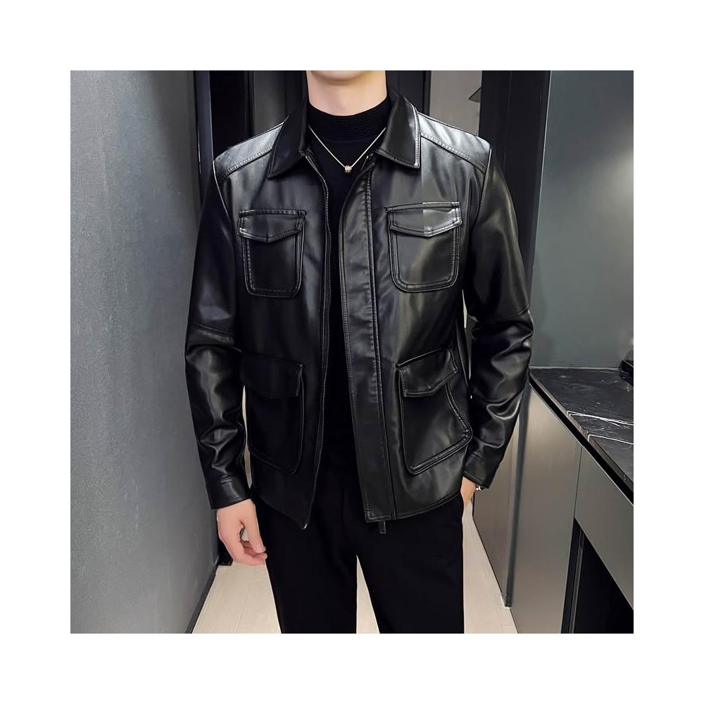 騎士風拉鍊皮衣外套 皮衣 黑色高級感皮外套 帥氣外套 男修身型韓版立領青年休閒 PU皮衣 皮夾剋 機車皮衣 夾克外套 皮革騎士