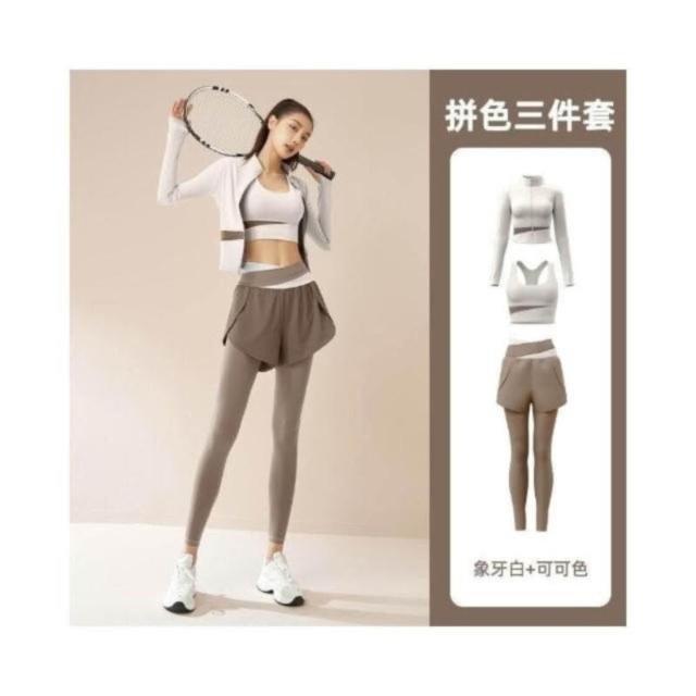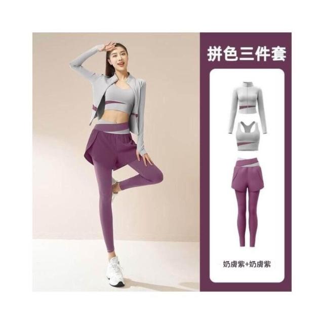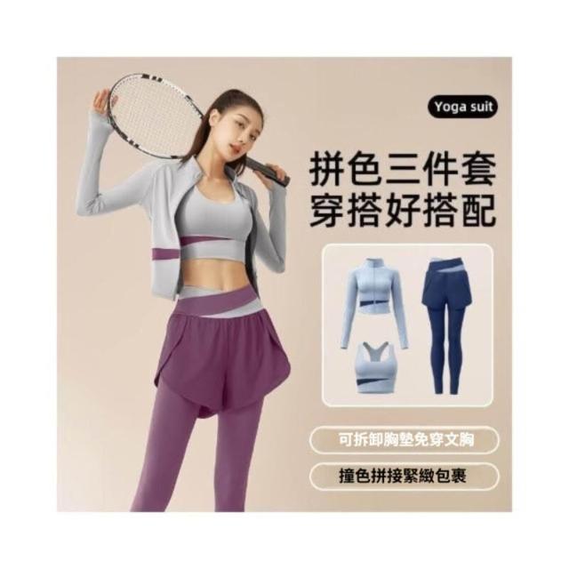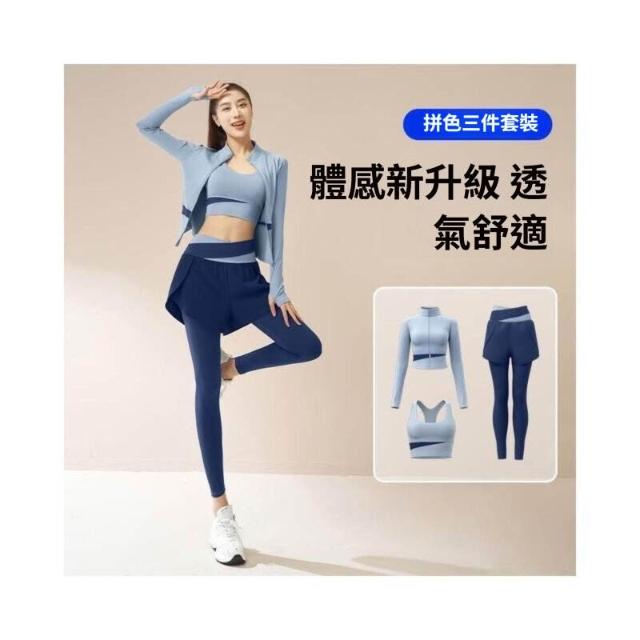 運動套裝女速乾輕薄透氣三件套運動套裝修身顯瘦瑜伽套裝健身服女瑜珈服瑜伽褲瑜珈套裝高腰瑜珈褲防震運動內衣