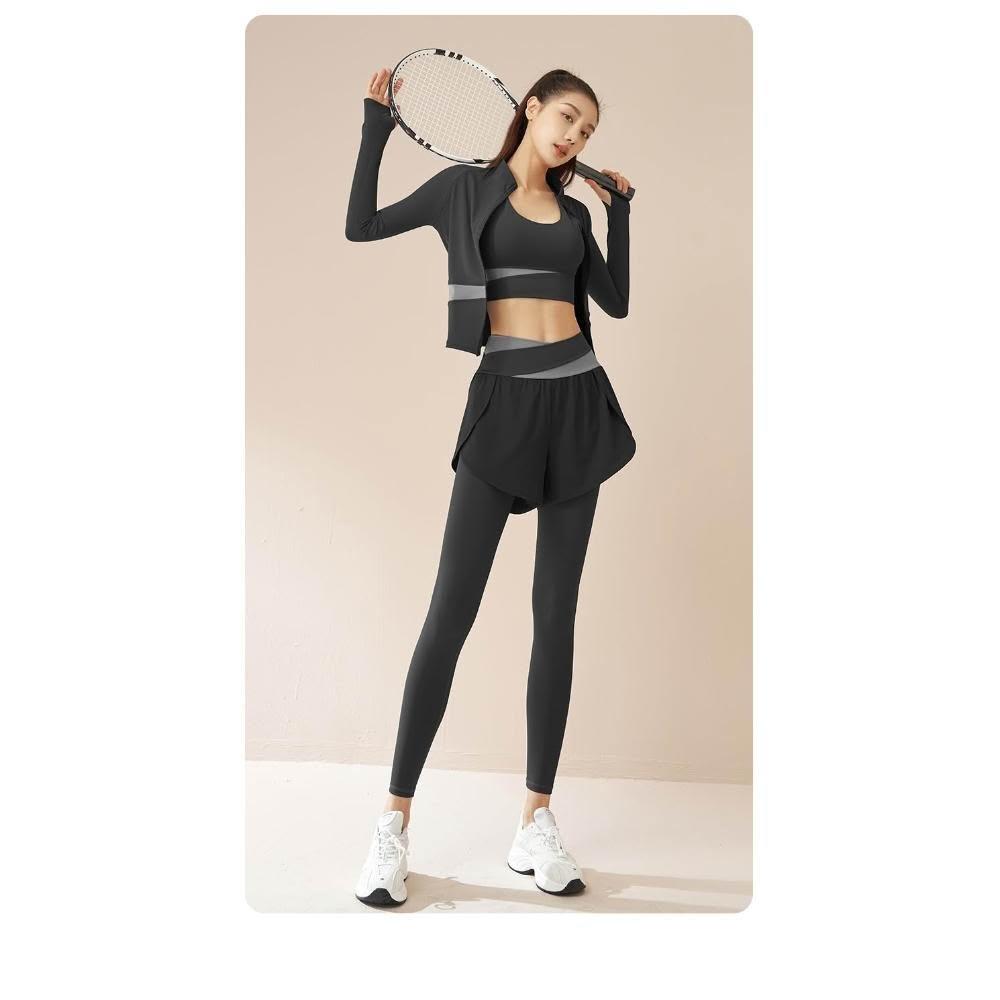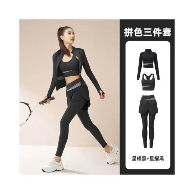 運動套裝女速乾輕薄透氣三件套運動套裝修身顯瘦瑜伽套裝健身服女瑜珈服瑜伽褲瑜珈套裝高腰瑜珈褲防震運動內衣