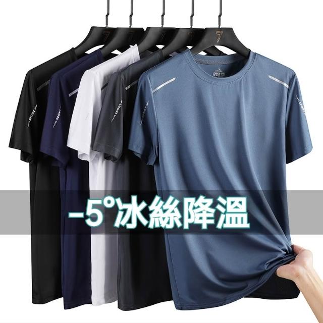 加大碼M-5XL 夏天男女同款涼感衣冰絲速乾衣涼感T恤吸濕排汗衣冰絲T透氣速乾衣素t圓領冰絲上衣寬鬆百搭冰絲衣