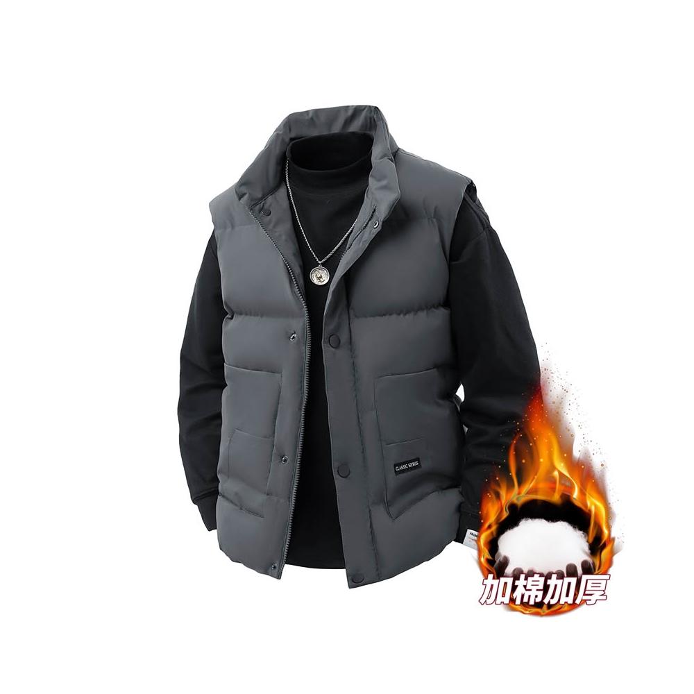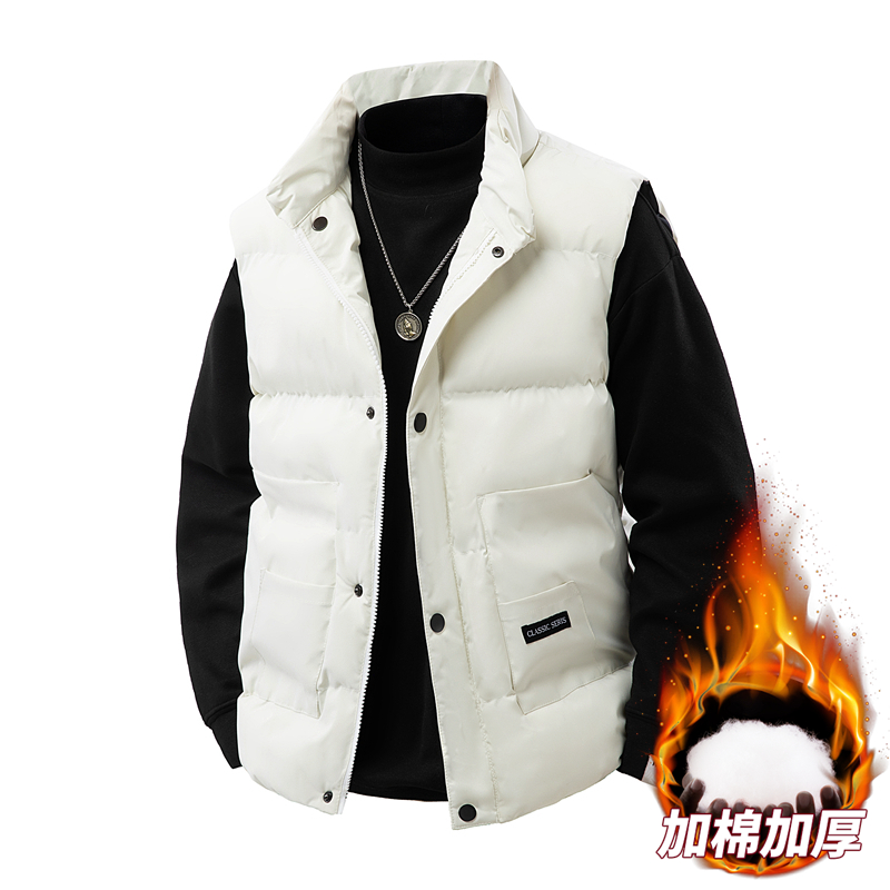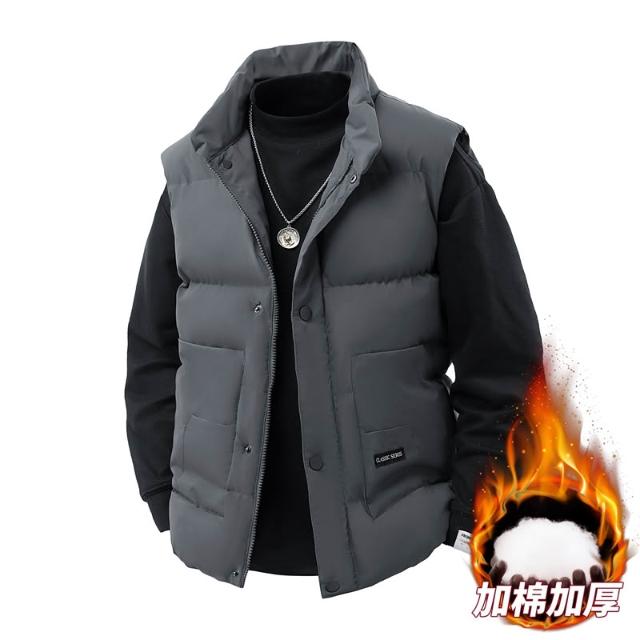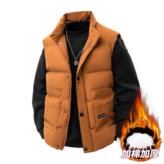 馬甲背心男羽絨棉服外套棉襖坎肩無袖保暖時尚無帽雪地滑雪服韓國夾克棉服登山服翻領鋪棉飛行外套修身顯瘦寬鬆休閒短款上衣