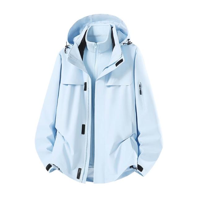 衝鋒衣男可拆卸兩件套三合一保暖時尚韓國棉服修身顯瘦寬鬆休閒秋冬季上衣登山服防風防水防污戶外運動鋪棉夾克飛行衝鋒外套