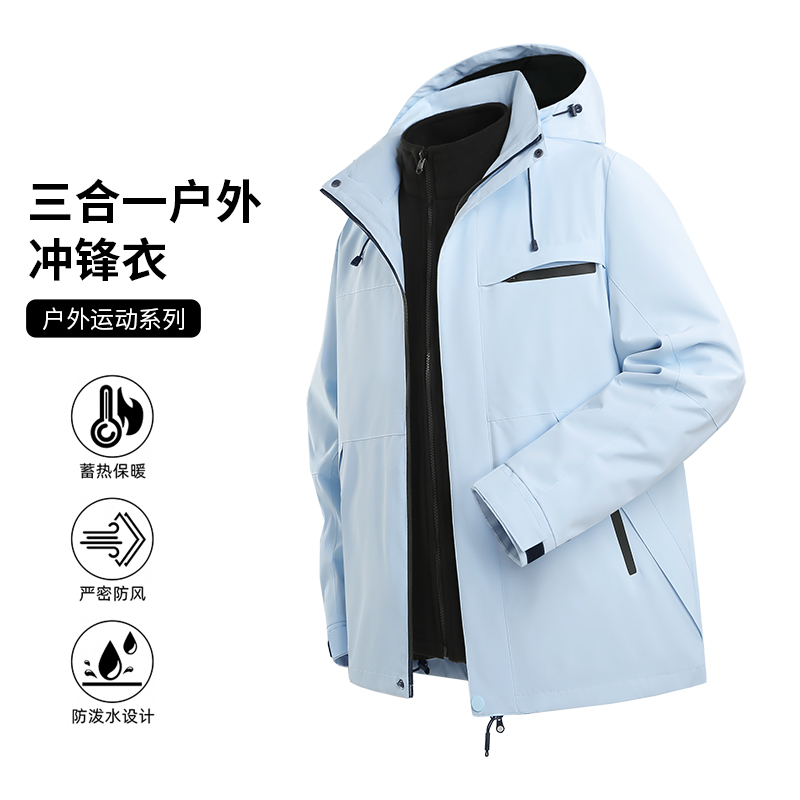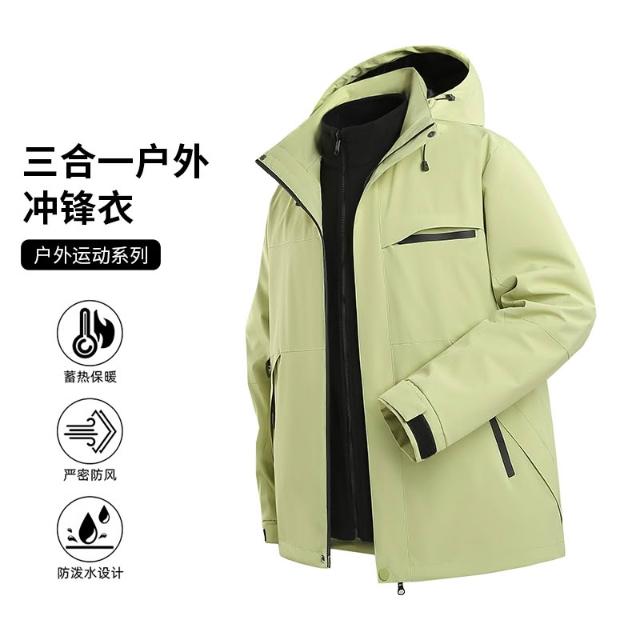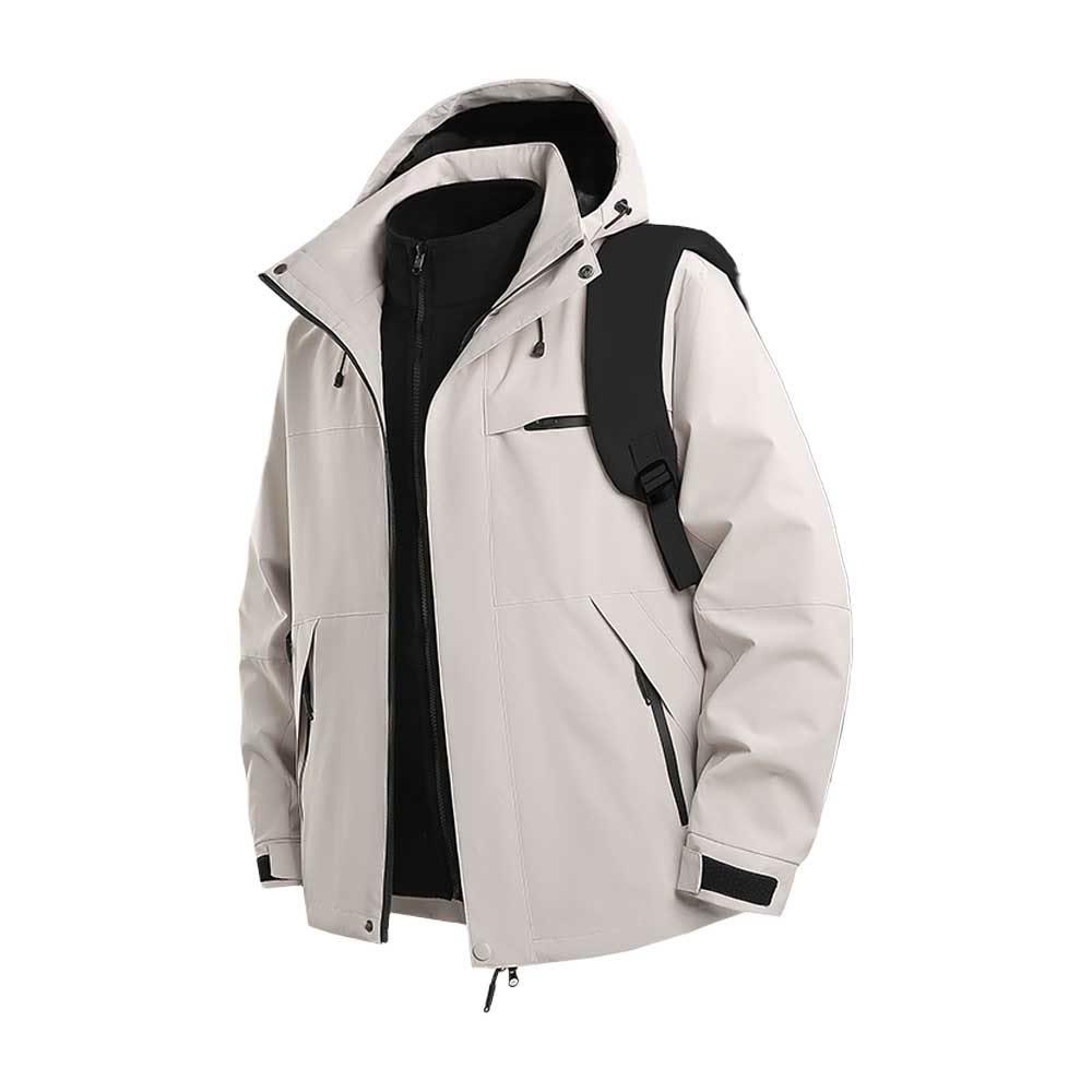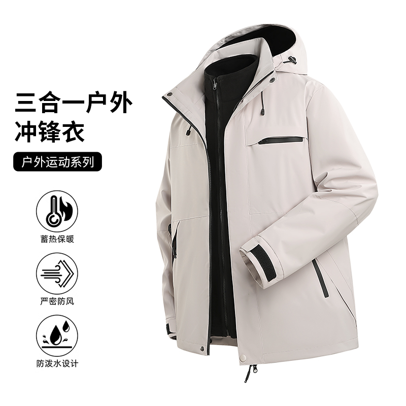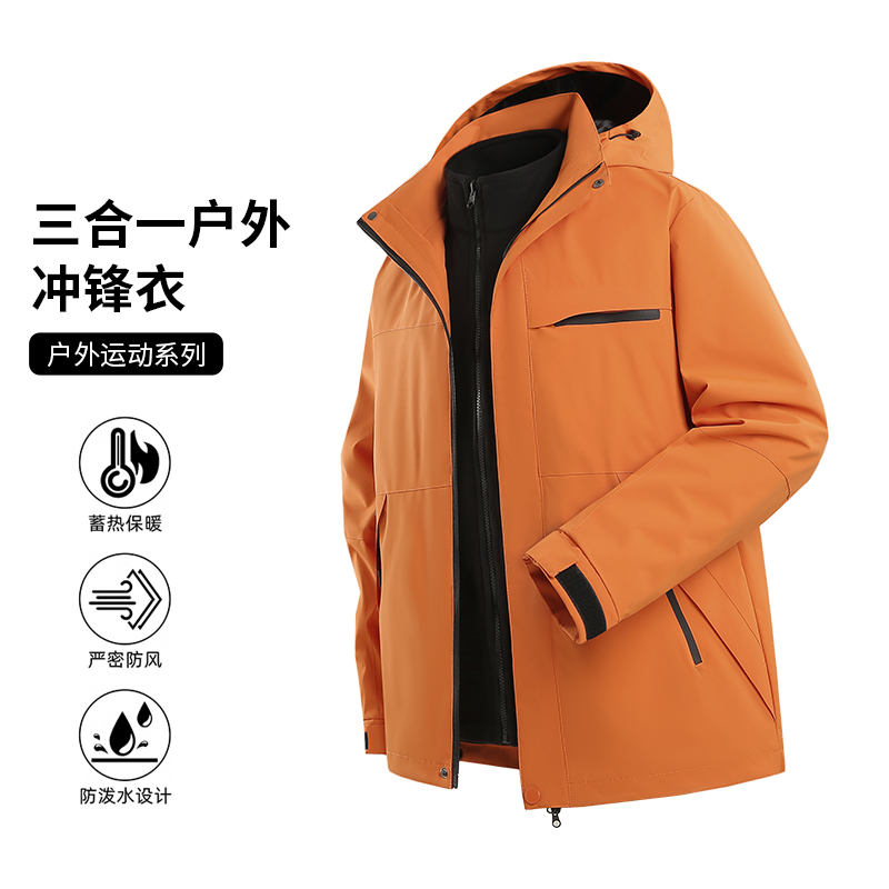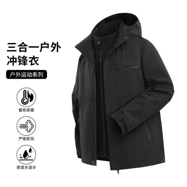 衝鋒衣男可拆卸兩件套三合一時尚韓國棉服修身顯瘦寬鬆休閒秋冬季上衣登山服防風防水防污戶外運動鋪棉夾克飛行衝鋒外套