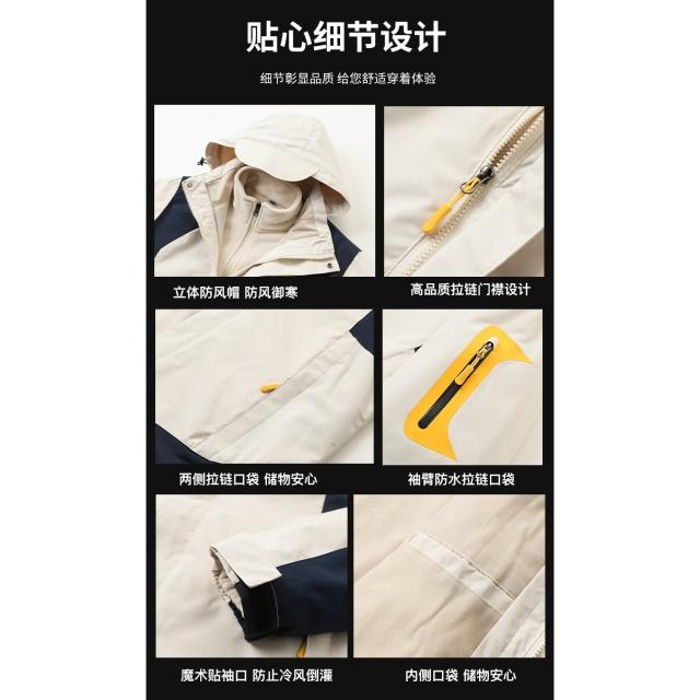 衝鋒衣男搖粒絨可拆卸兩件套三合一防風防水防污戶外運動鋪棉夾克飛行衝鋒外套保暖時尚韓國棉服修身顯瘦寬鬆休閒秋冬季上衣登山服