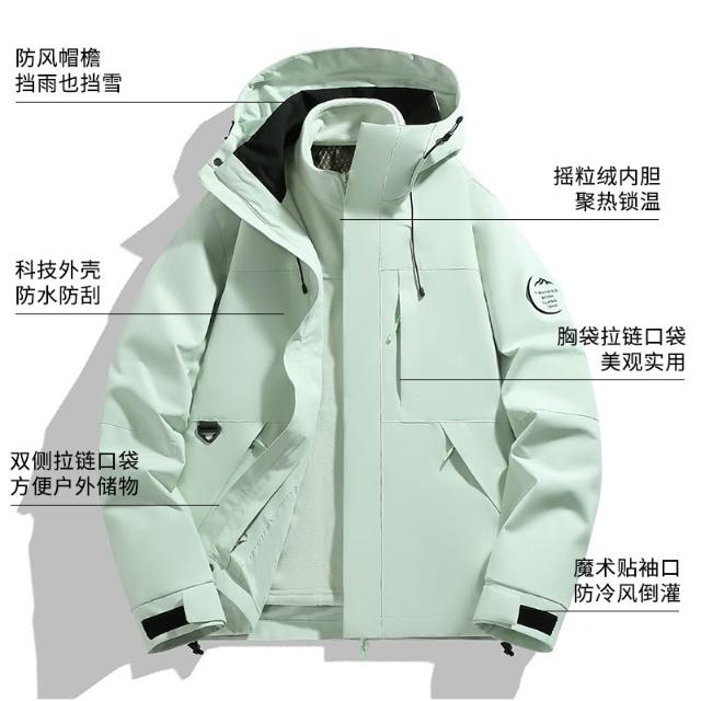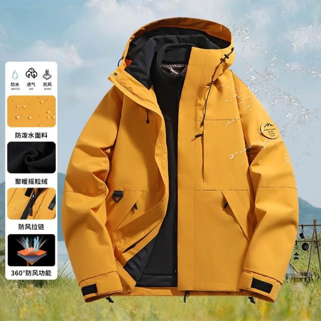 衝鋒衣男石墨烯三合一兩件套韓國棉服修身顯瘦寬鬆休閒秋冬季上衣登山服防風防水防污戶外運動鋪棉夾克飛行衝鋒外套保暖時尚