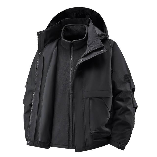衝鋒衣男單層三合一防風防水防污戶外運動鋪棉夾克飛行衝鋒外套保暖時尚韓國棉服修身顯瘦寬鬆休閒秋冬季上衣登山服夾克