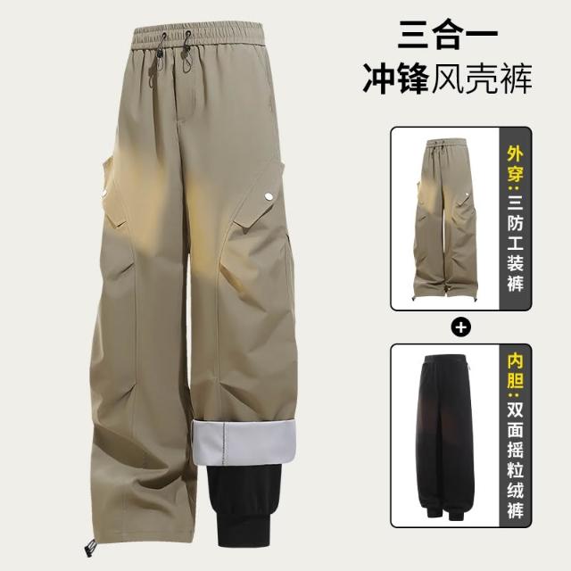 衝鋒褲男運動長褲大尺碼冬季加絨加厚刷毛雪褲男款滑雪褲男生寬鬆直筒機能工裝褲防水防風登山運動褲美式保暖防寒工作褲