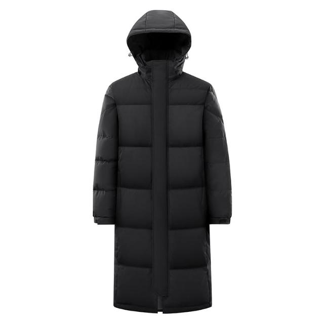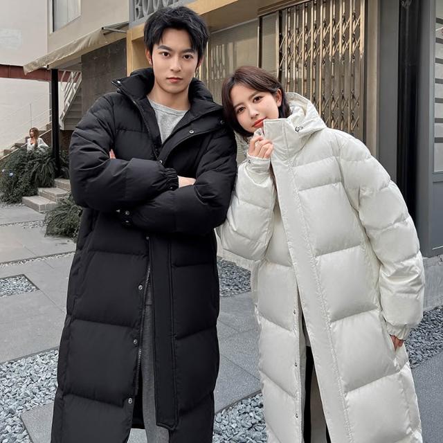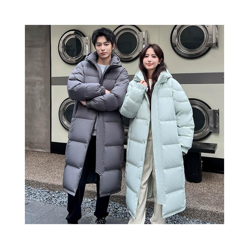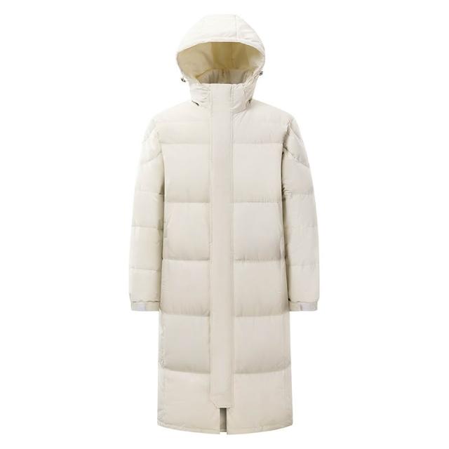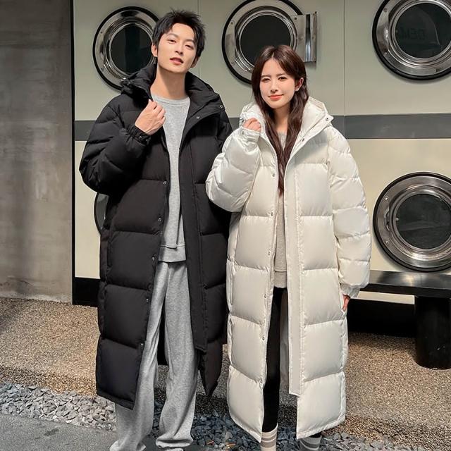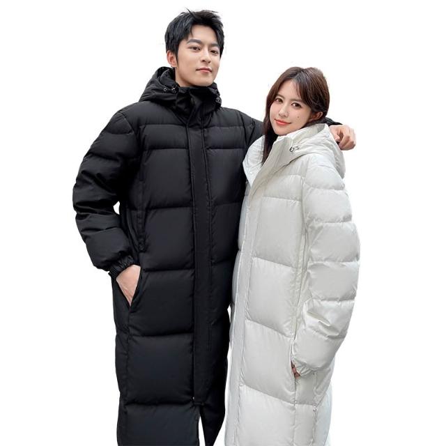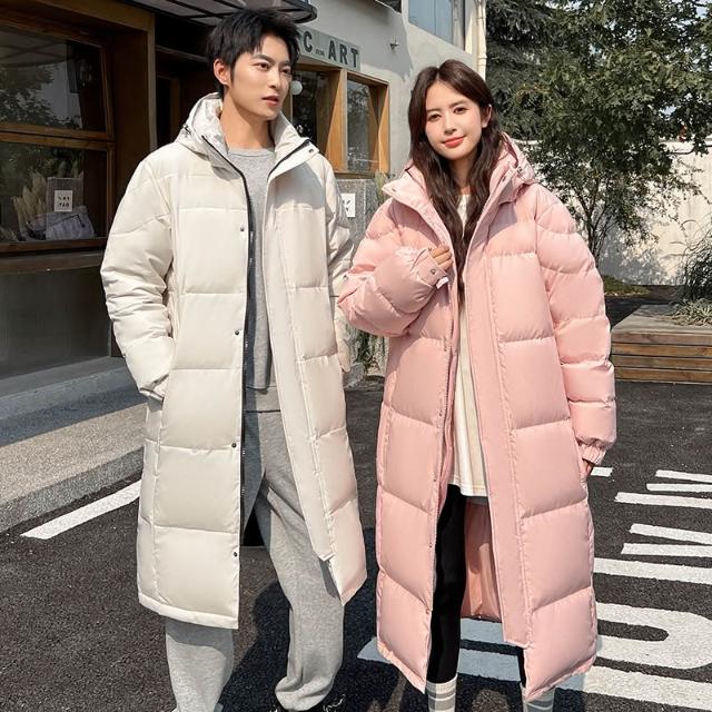羽絨服男女同款隔熱加絨防風防水過膝青年冬天連帽雪地滑雪服青年學院風棉服中長版羽絨外套白鴨絨青春流行羽絨衣服冬季保暖