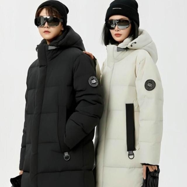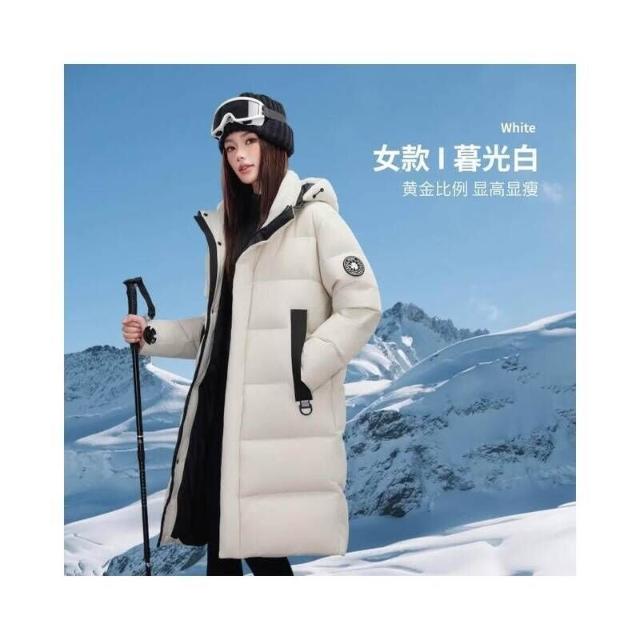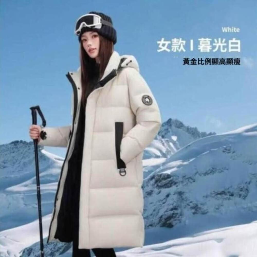 羽絨外套男女同款中長版羽絨服白鴨絨保暖隔熱加絨防風防水過膝青年冬天連帽雪地滑雪服青年學院風棉服青春流行羽絨衣服冬季