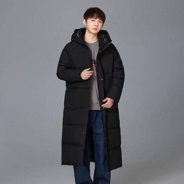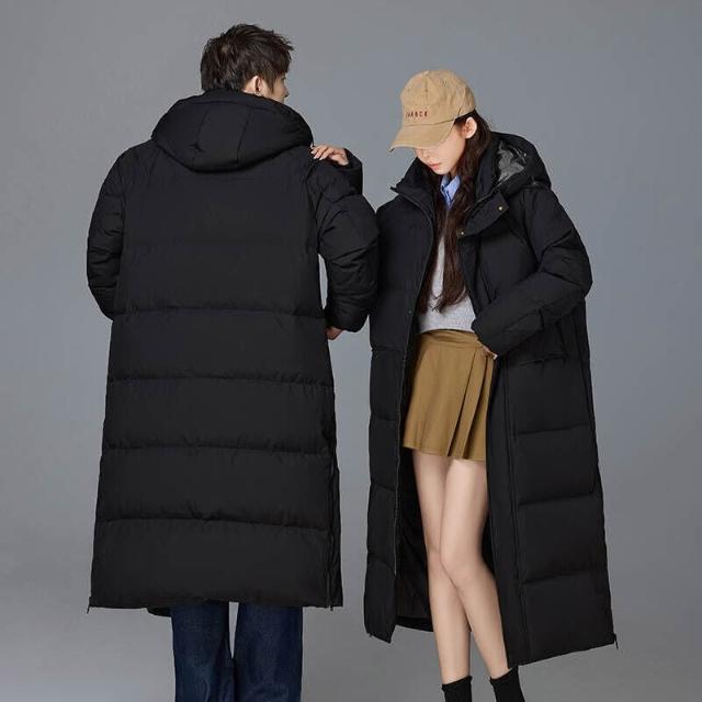 羽絨服冬天連帽雪地滑雪服棉服防風防水過膝羽絨外套加絨男女同款青年青年學院風冬季保暖隔熱白鴨絨青春流行羽絨衣中長款