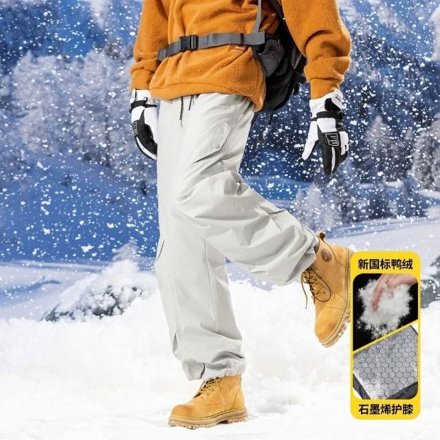 運動長褲衝鋒褲男羽絨褲白鴨絨加絨加厚戶外雪地滑雪褲爬山防風防水防刮多口袋工裝褲秋冬天工作褲保暖防風禦寒彈性長褲休閒長褲