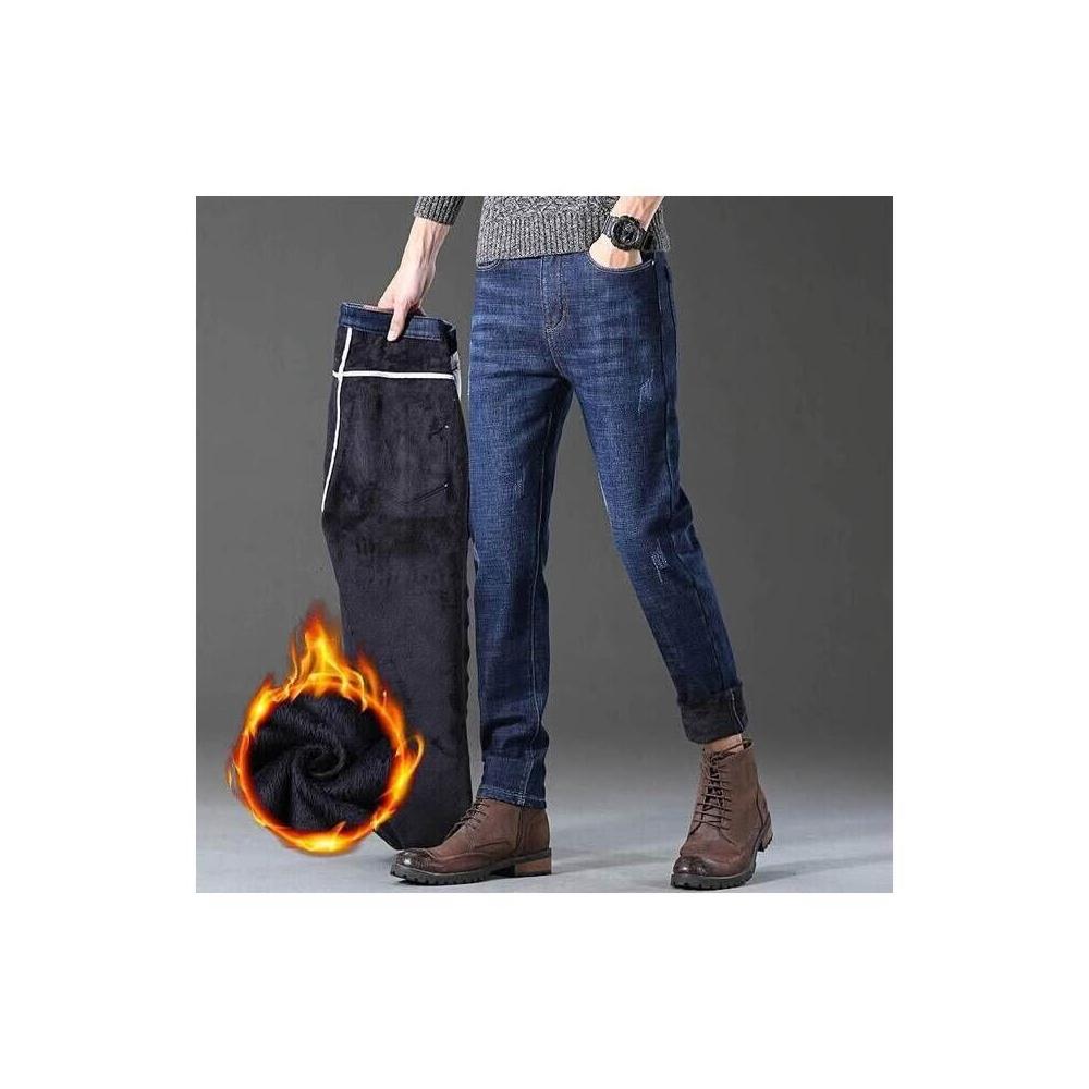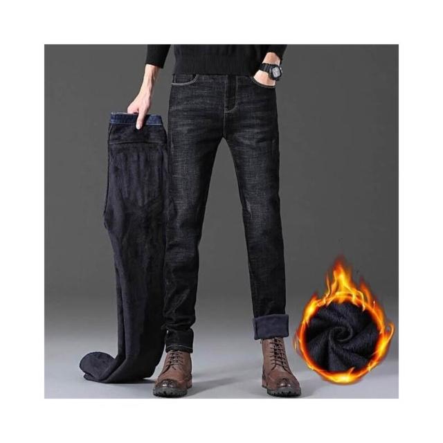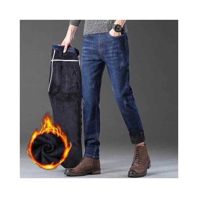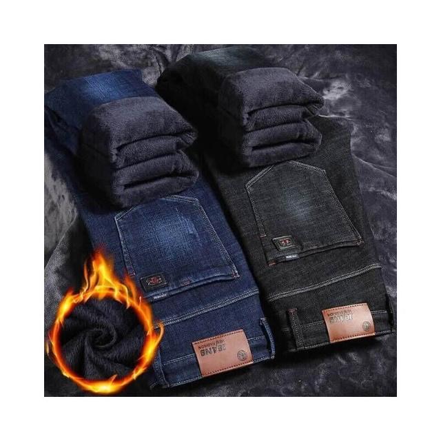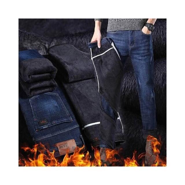 直筒牛仔褲男秋冬季男款加絨防風保暖褲大尺碼彈性寬褲復古刷毛耐磨工作褲男士商務修身牛仔長褲運動休閒褲彈力緊身褲子男生登山褲