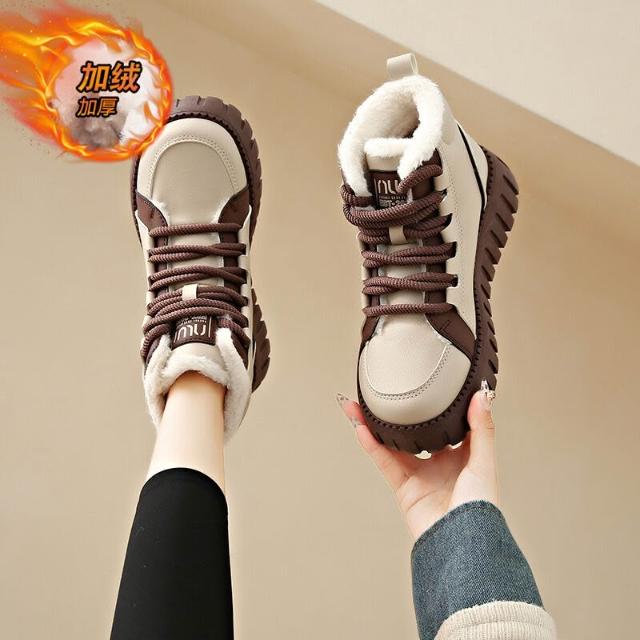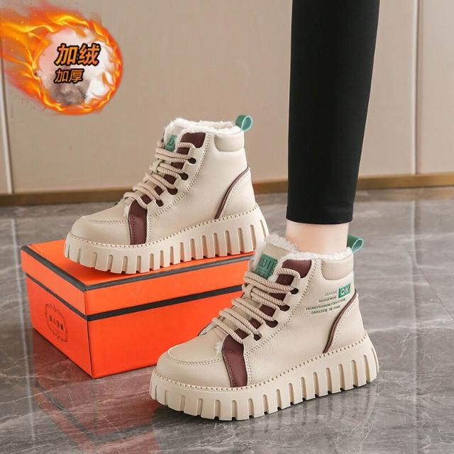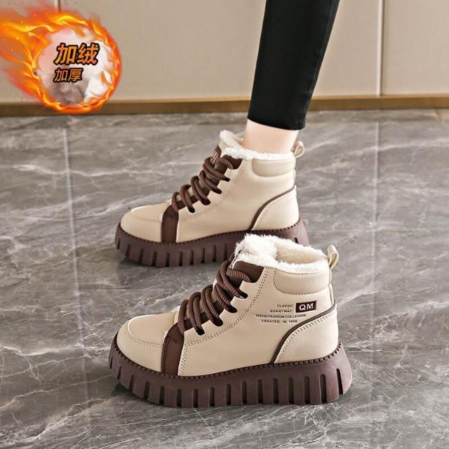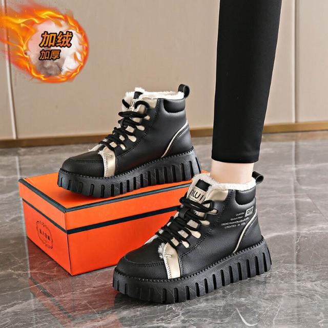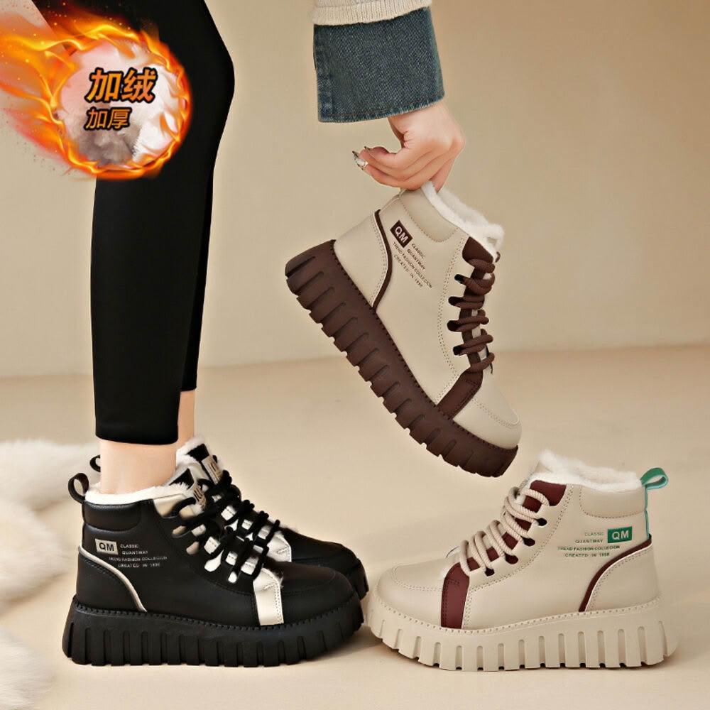 防水鞋女冬季韓國復古寬楦運動鞋黑色厚底增高休閑鞋加絨保暖舒適雪靴防滑耐磨登山鞋輕量透氣慢跑鞋軟底緩震氣墊馬丁靴大尺碼鞋子