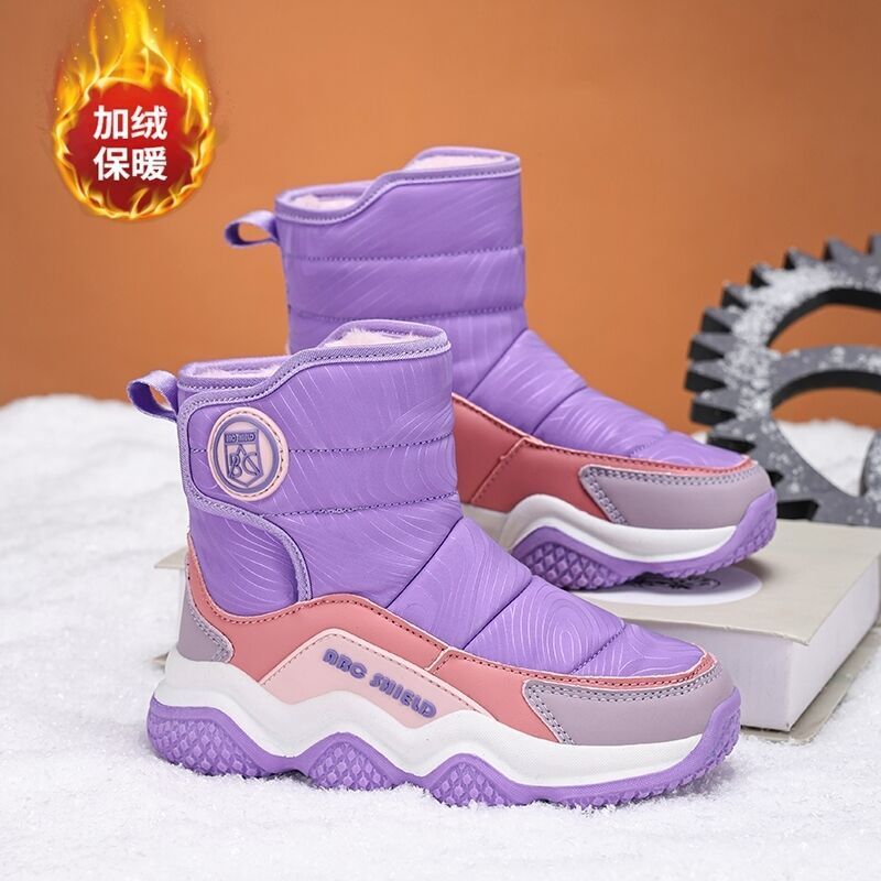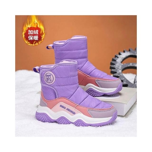 兒童雪靴男女款中筒保暖防水防滑雪地靴子戶外防潑水止滑登山鞋大尺碼休閒防寒厚底雪地鞋時尚韓國增高寬楦靴男女童加絨運動長靴
