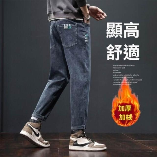 牛仔褲加絨男士秋冬季寬松錐形直筒褲新款春秋彈力休閑褲男士高檔潮牌保暖長褲男加厚牛仔褲發熱長褲輕商務簡約時尚百搭彈力刷毛褲