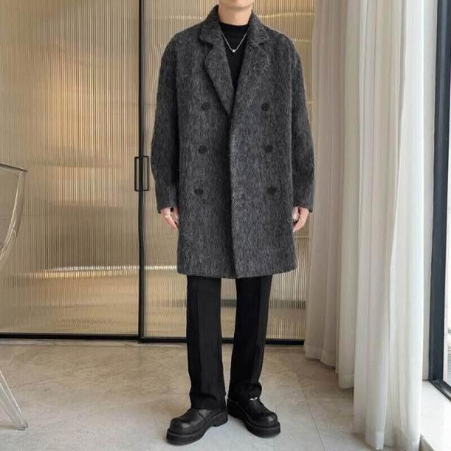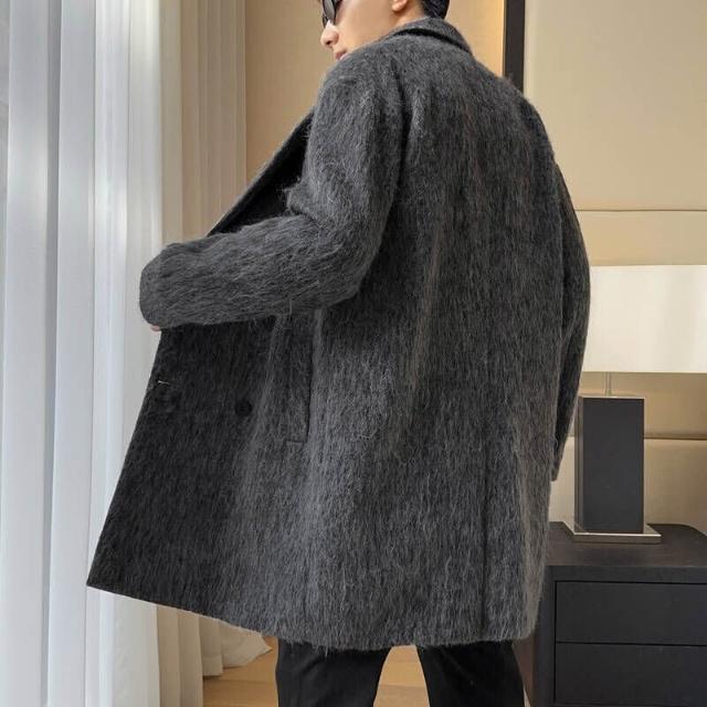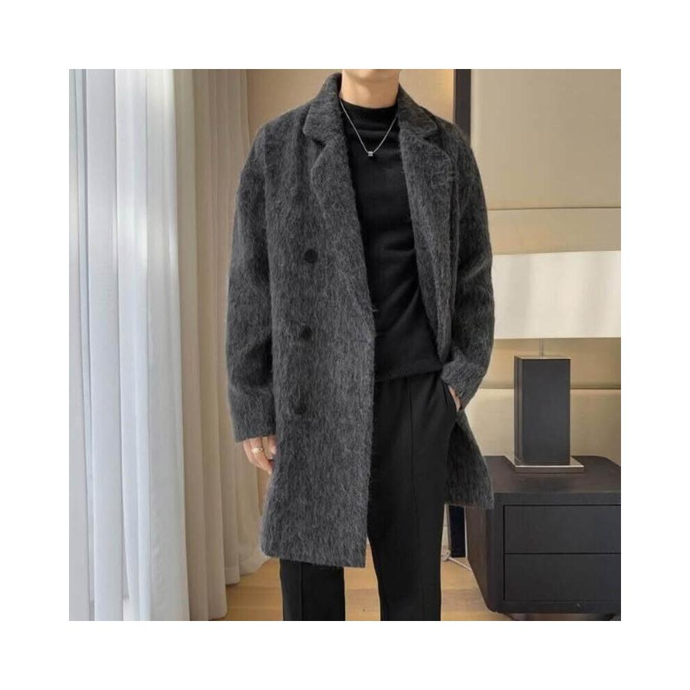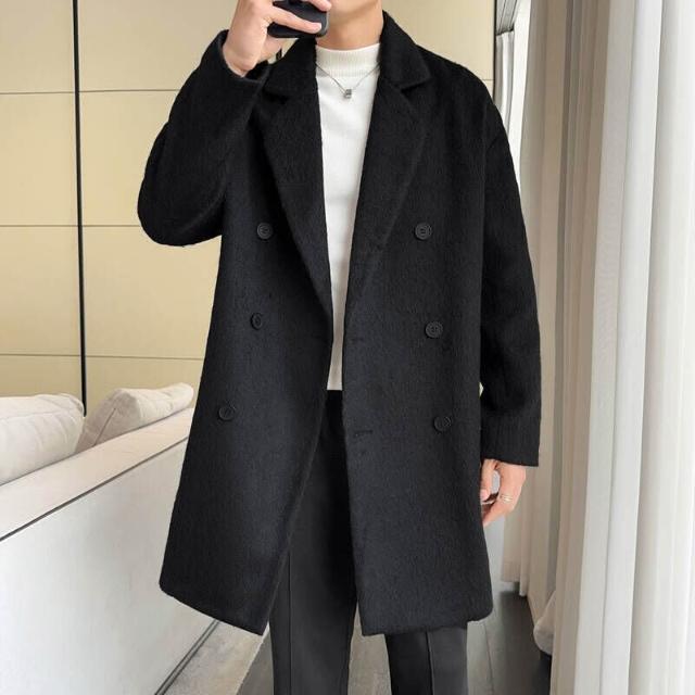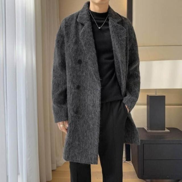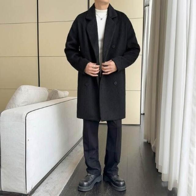 風衣外套男大衣外套休閑寬松中長款毛呢大衣男士羊毛外套青年韓版秋冬潮牌羊羔絨港風風衣外套呢子外套中長款大衣韓版風衣加絨保暖