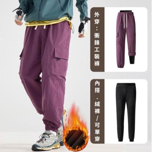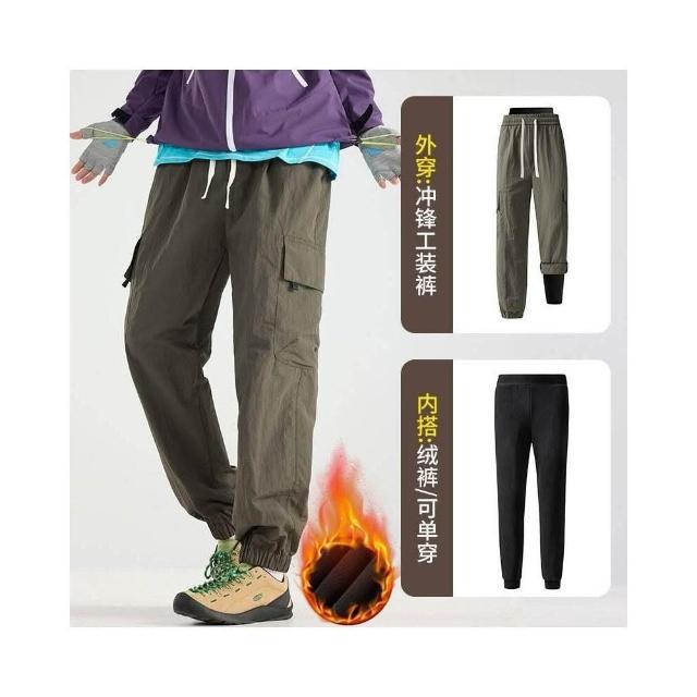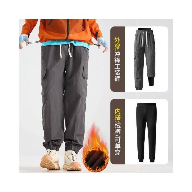 三合一衝鋒褲雪褲刷毛褲男衝鋒褲戶外運動防風防水沖鋒褲三防加絨冬季秋季休閑褲男長褲子時尚加厚加絨保暖登山褲防水褲滑雪褲男款