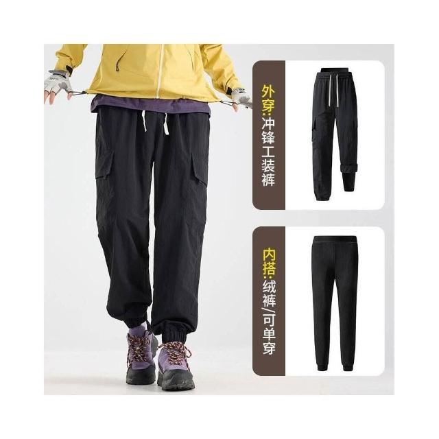 三合一衝鋒褲雪褲刷毛褲男衝鋒褲戶外運動防風防水沖鋒褲三防加絨冬季秋季休閑褲男長褲子時尚加厚加絨保暖登山褲防水褲滑雪褲男款