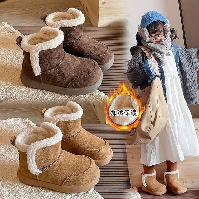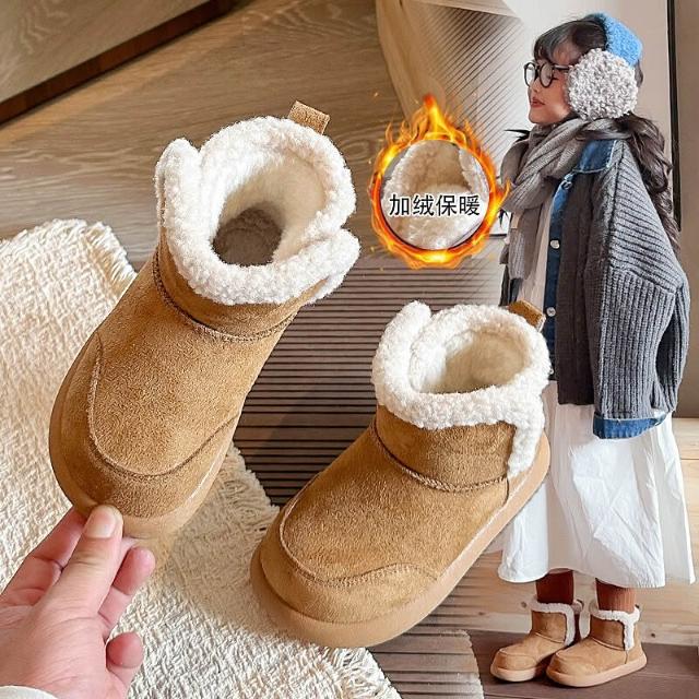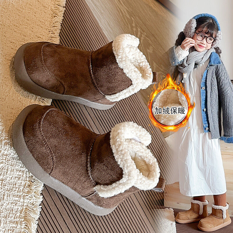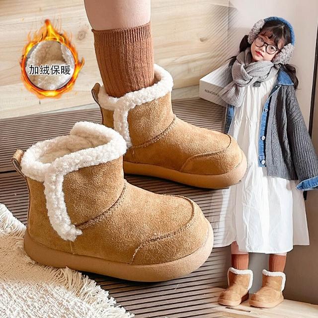 雪靴冬季兒童戶外登山滑雪雪地靴加絨保暖靴子防滑防水厚底登山鞋韓國男士黑色中筒休閑鞋舒適輕便慢跑鞋防寒增高軟底鞋子