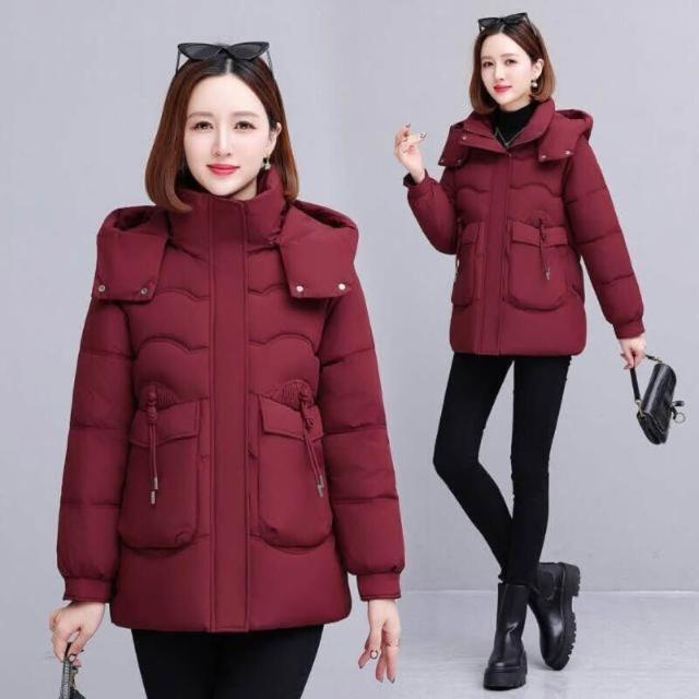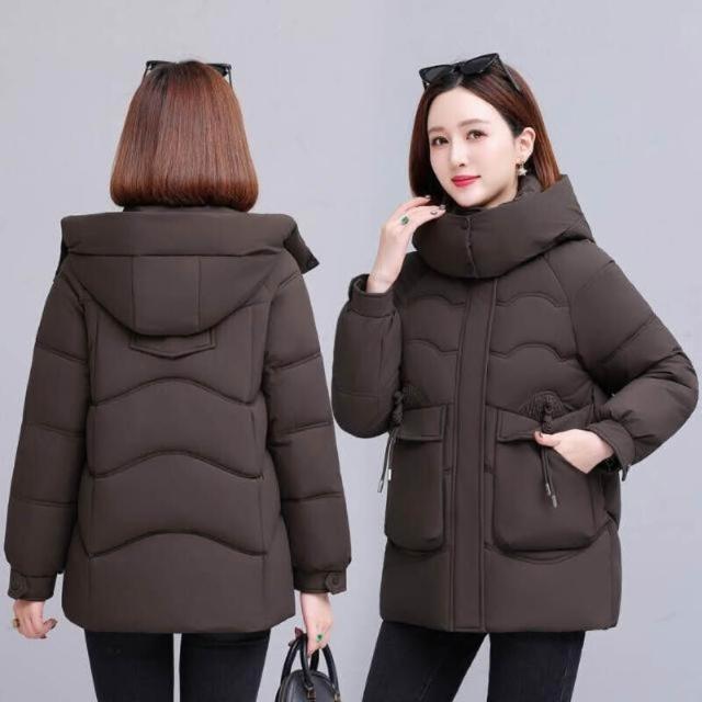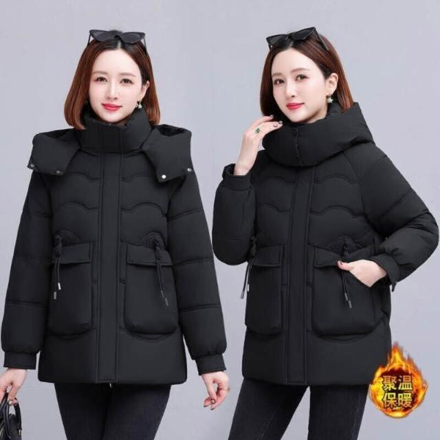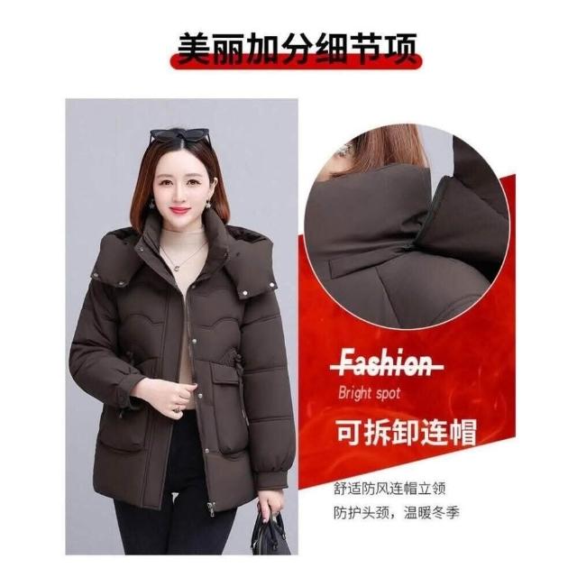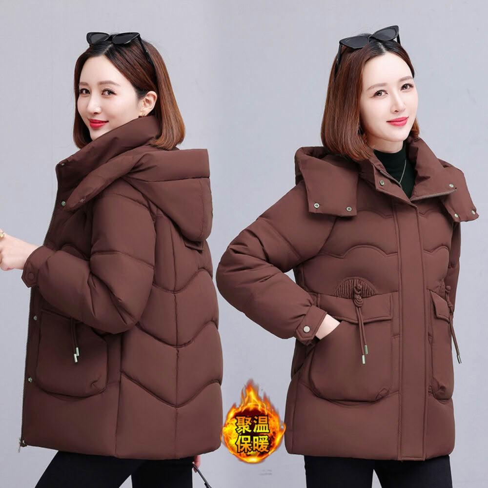 羽絨外套女款防風防水保暖外套大尺碼防寒鋪棉外套大衣女生短版羽絨衣服禦寒滑雪衣外套媽媽石墨烯厚麵包外套韓版休閒連帽風衣外套
