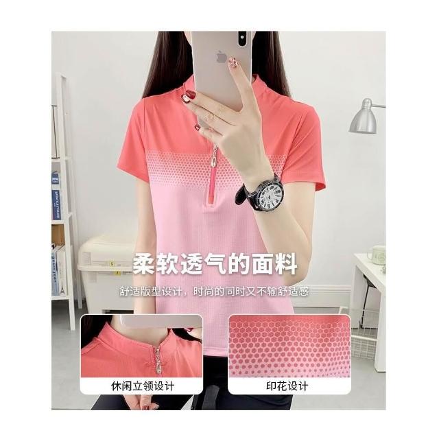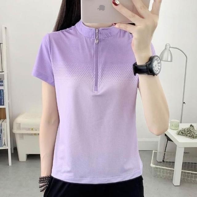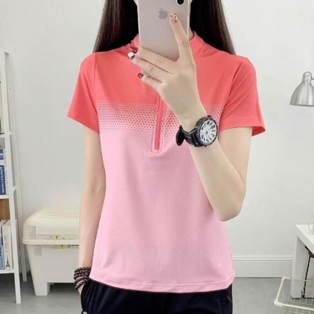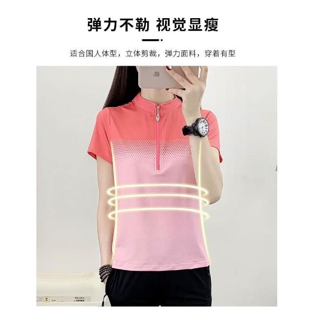 運動上衣女夏季修身透氣薄款短袖t恤吸濕排汗衫彈性立領速乾顯瘦健身衣夏天大呎碼時尚百搭冰絲涼感衣網眼休閒衣服女生跑步排汗衣
